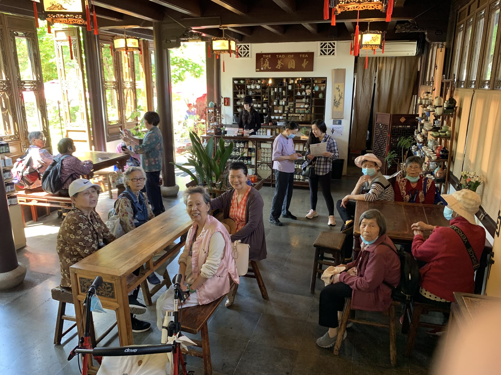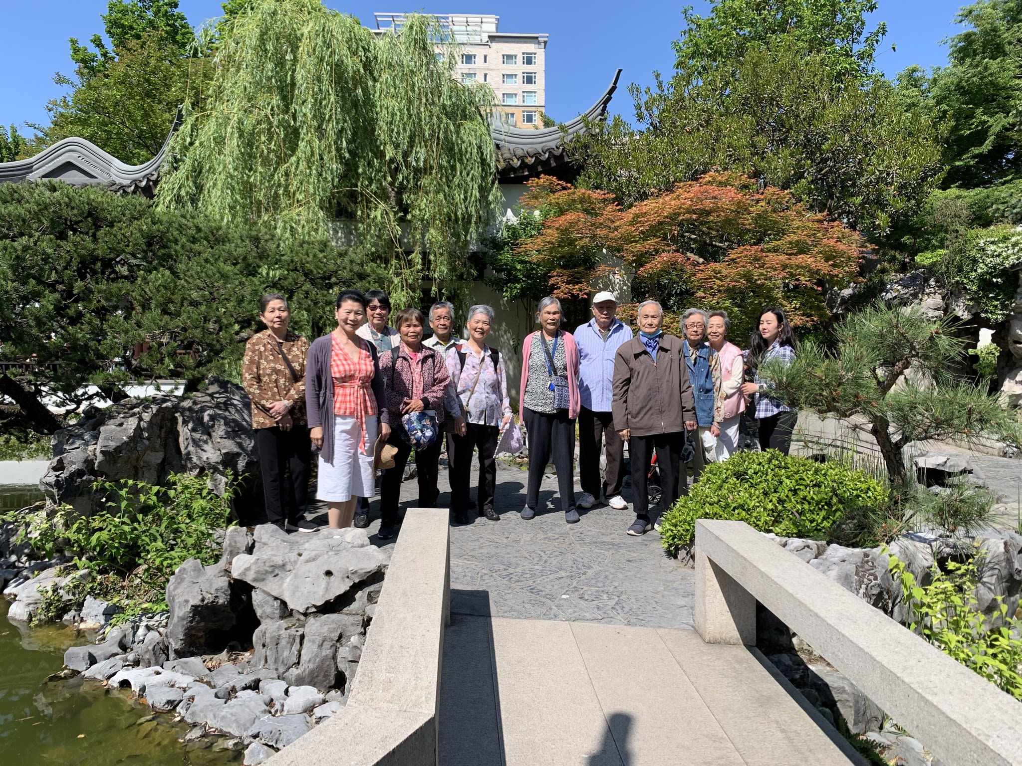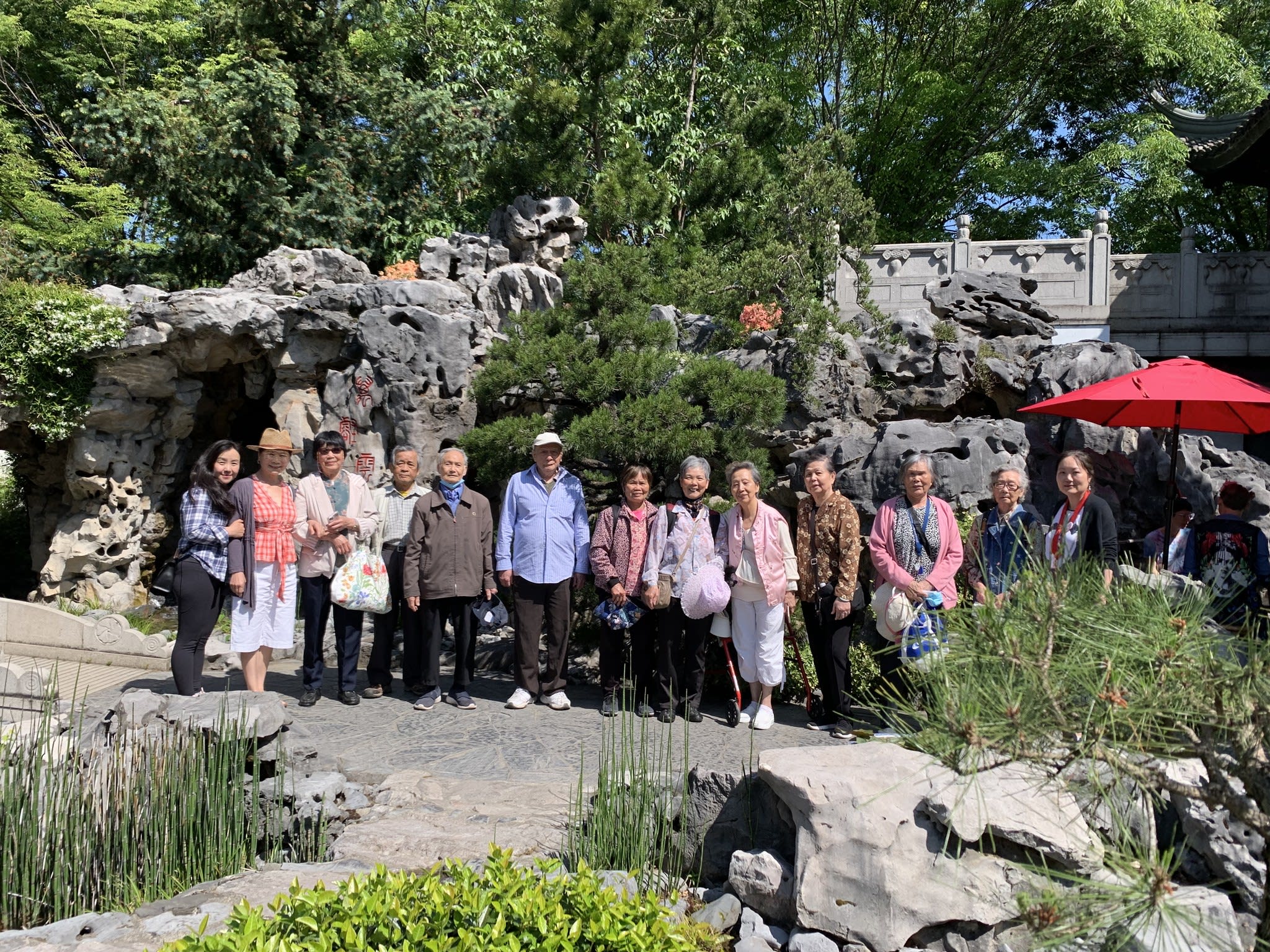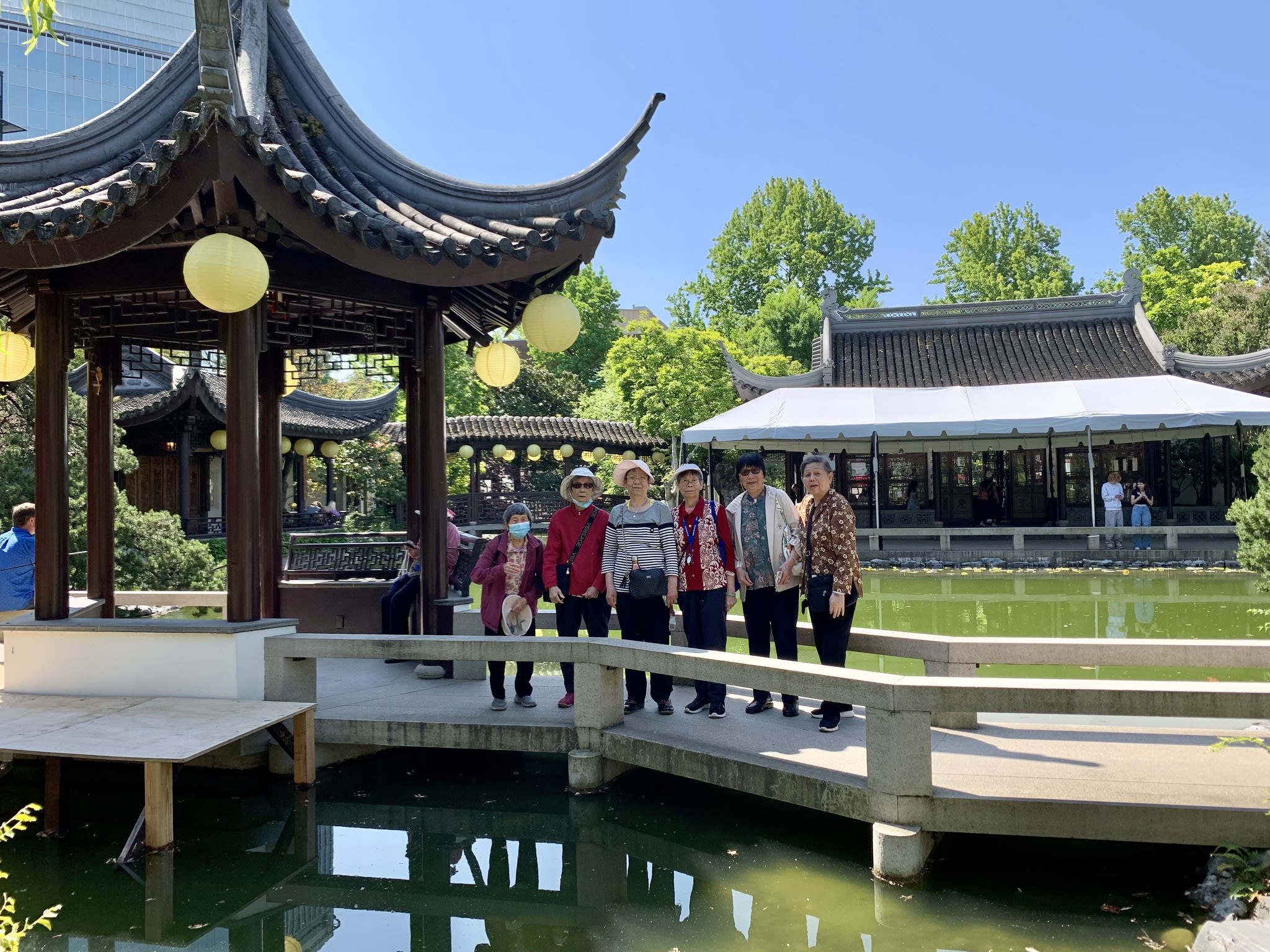 今天是我们组织居住在老人公寓的老人们去兰苏园游玩的日子,报名超出了一位,@Maggie就决定让阿姨做在自己的车上,到了那里另外一位义工@Jing已经等候在那里。进到园内又碰上@Anna ,顺便给老人们做了一段导游。老人用完了茶点,还有时间到旁边的社区艺术展看了看。两个小时时间不长,但老人有机会得以离开麻将桌,享受外面的阳光和重温曾经熟悉的生活。下个月我们将转向12街的老人公寓,希望那里的老人家属能加入我们的义工行列,包括事先登记,关照老人上车并能全程陪同老人游览兰苏园。活动固定在每个月的第四个周四。