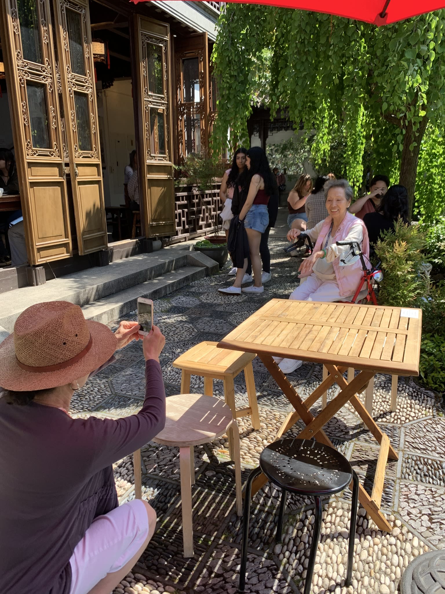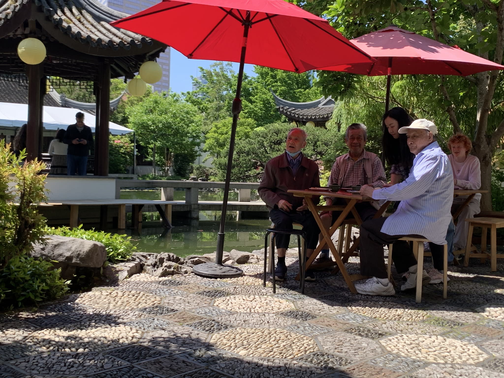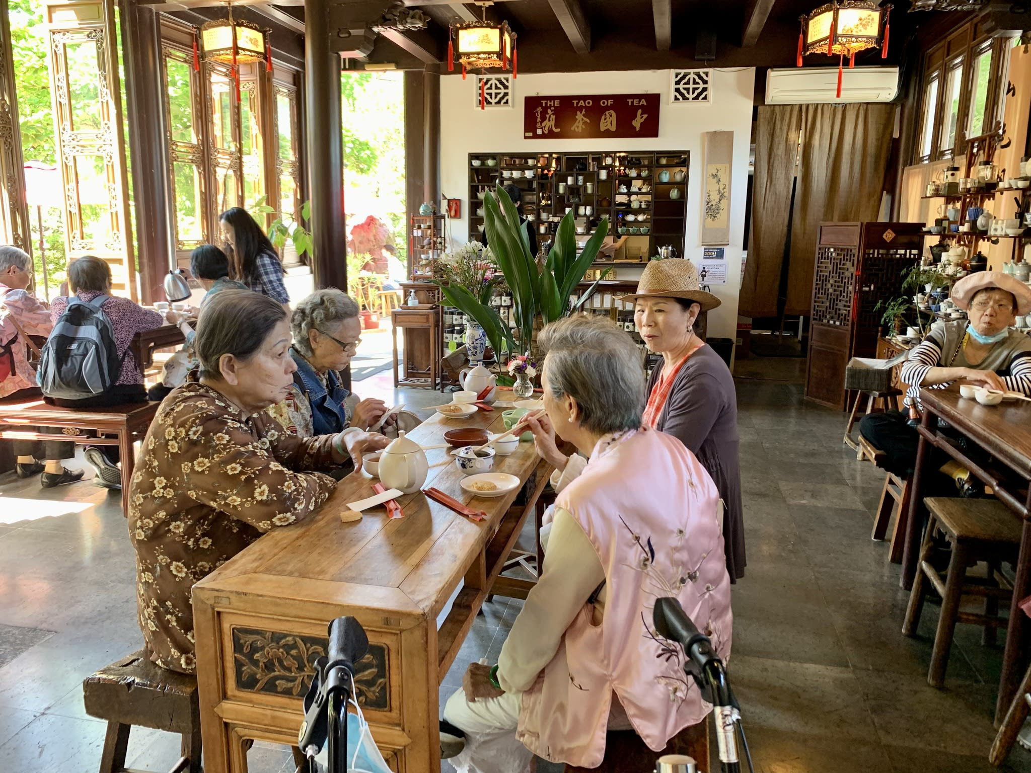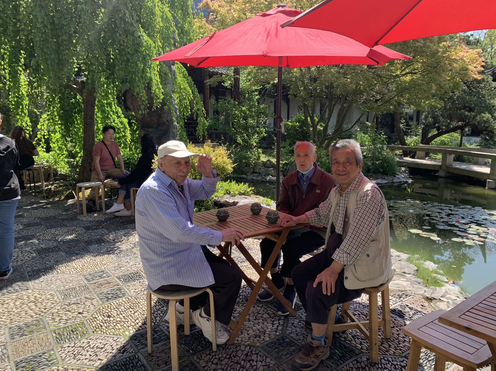 今天是我们组织居住在老人公寓的老人们去兰苏园游玩的日子,报名超出了一位,@Maggie就决定让阿姨做在自己的车上,到了那里另外一位义工@Jing已经等候在那里。进到园内又碰上@Anna ,顺便给老人们做了一段导游。老人用完了茶点,还有时间到旁边的社区艺术展看了看。两个小时时间不长,但老人有机会得以离开麻将桌,享受外面的阳光和重温曾经熟悉的生活。下个月我们将转向12街的老人公寓,希望那里的老人家属能加入我们的义工行列,包括事先登记,关照老人上车并能全程陪同老人游览兰苏园。活动固定在每个月的第四个周四。