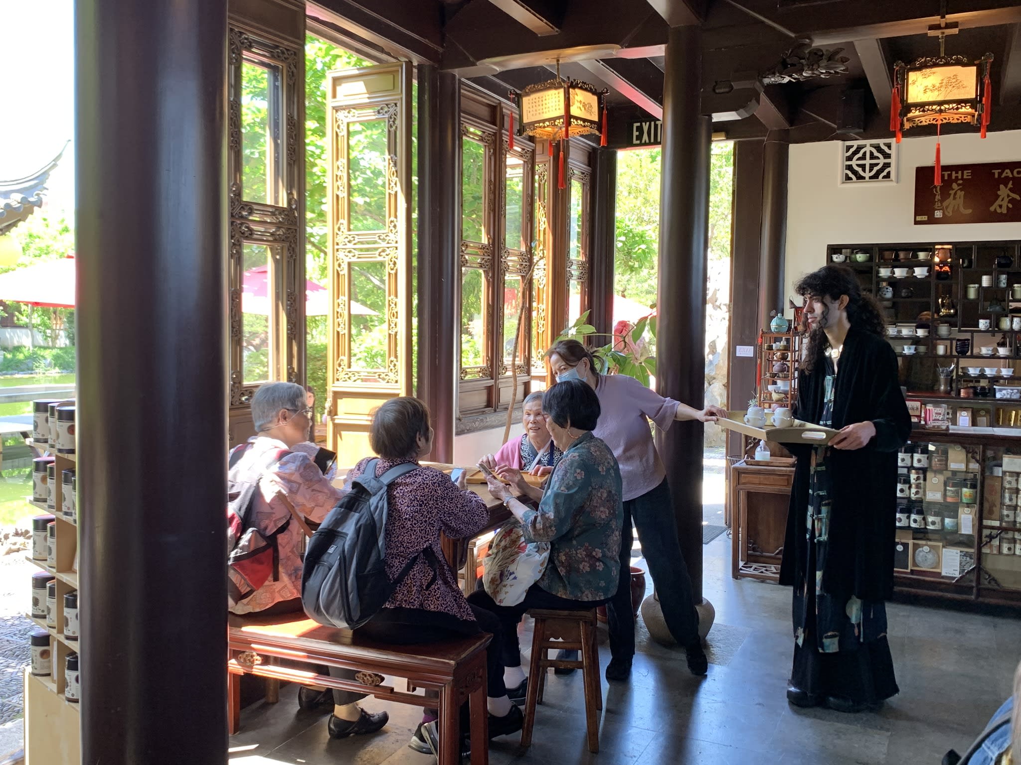 Today, the third group of seniors joined the tour at Lan Su Chinese Garden. We were fortunate to have a new volunteer who assisted Maggie in guiding the seniors. They even had the opportunity to visit the art show before getting on the bus provided by Ride Connection back to the senior apartments.