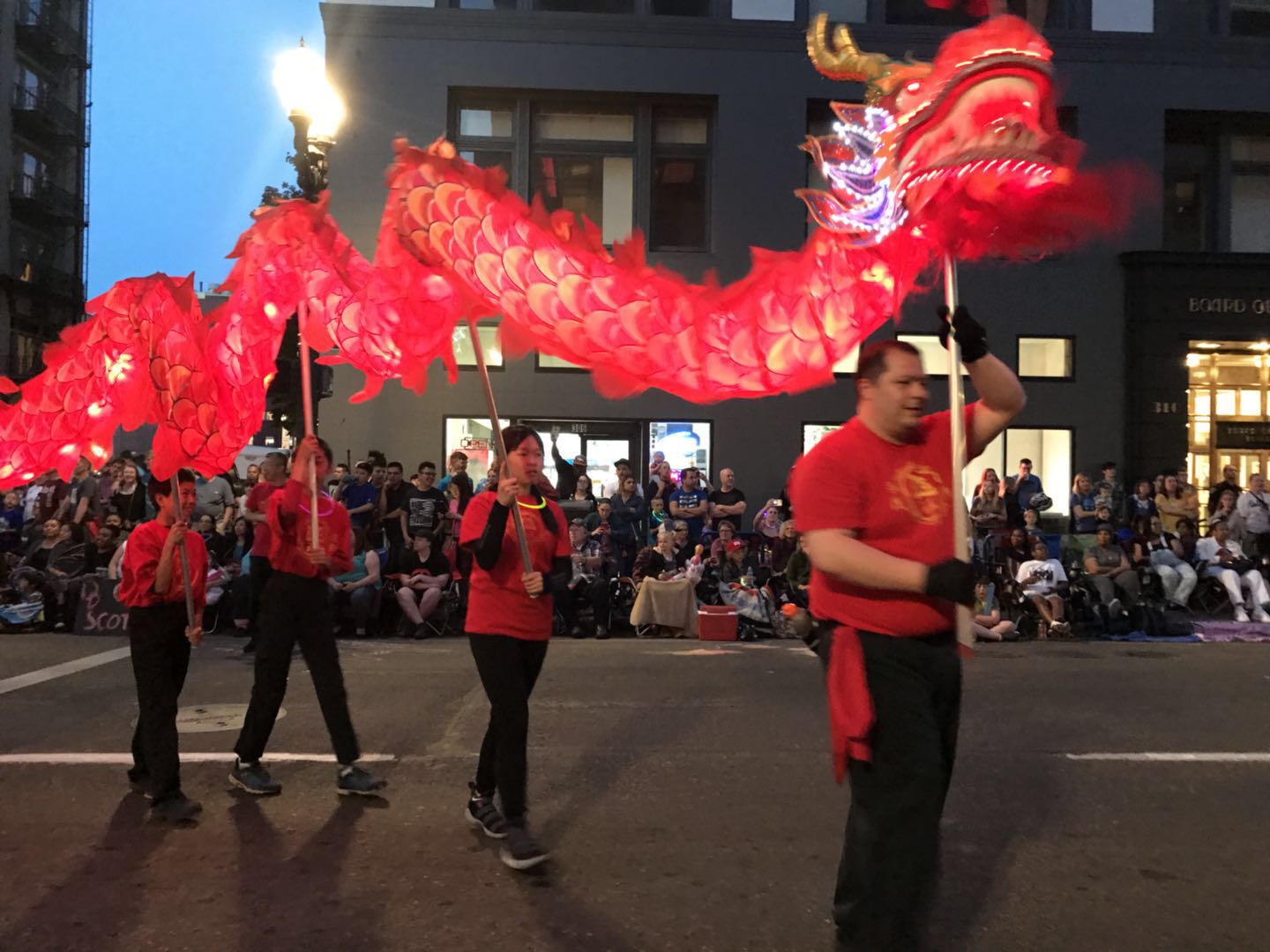 第二年联手李氏公所舞龙队参加玫瑰节星光巡游