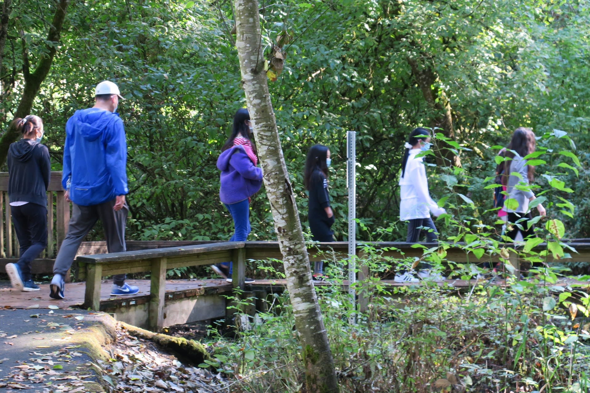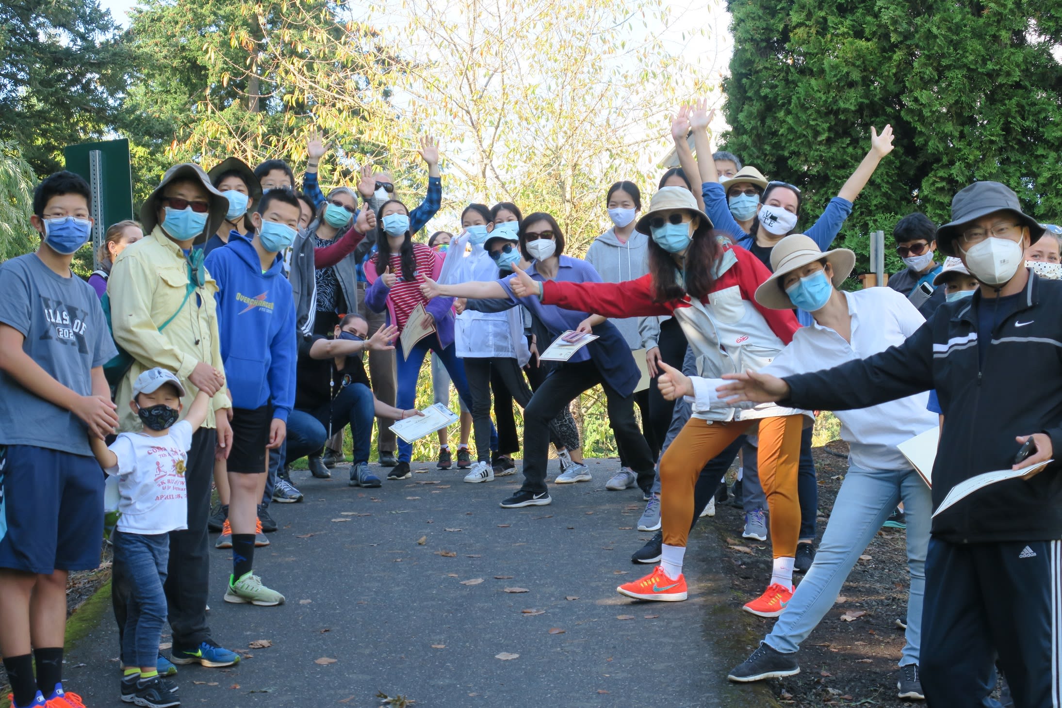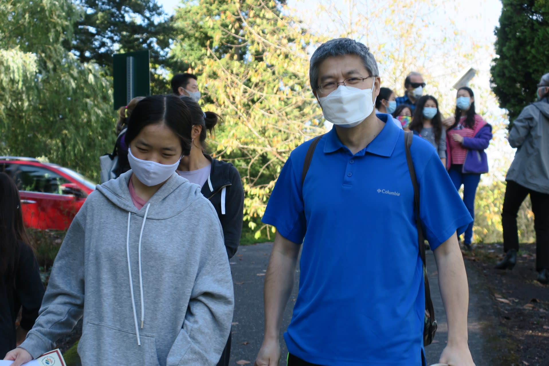 一条极具Oregon特色的小路迎来了社区的一群人,他们是参加THPRD组织的Welcoming Walk。这是一个全国性的活动,却是我们社区第一次参加。这让我想起刚去一个陌生的地方,当地人热情相邀,但你却婉拒了人家的好意,想想看以后这关系处起来是不是就会比较吃力,路上打招呼也会不那么的自然。如果是欣然接受,欢声笑语一番,彼此还是彼此,但是人家不会再当你为陌生人,自己也很快有了归属感。实际上,生活中是如此,移民到一个新的国度也是同样的道理。THPRD的这个活动就是给了我们这么一个印象,走了一小段路,彼此似乎成了至交,今天THPRD主动提供2500美元,邀请我们未来半年内在他们管辖内的任何一个地方举办活动。这不就是所谓的“你敬我一尺,我敬你一丈”吗。