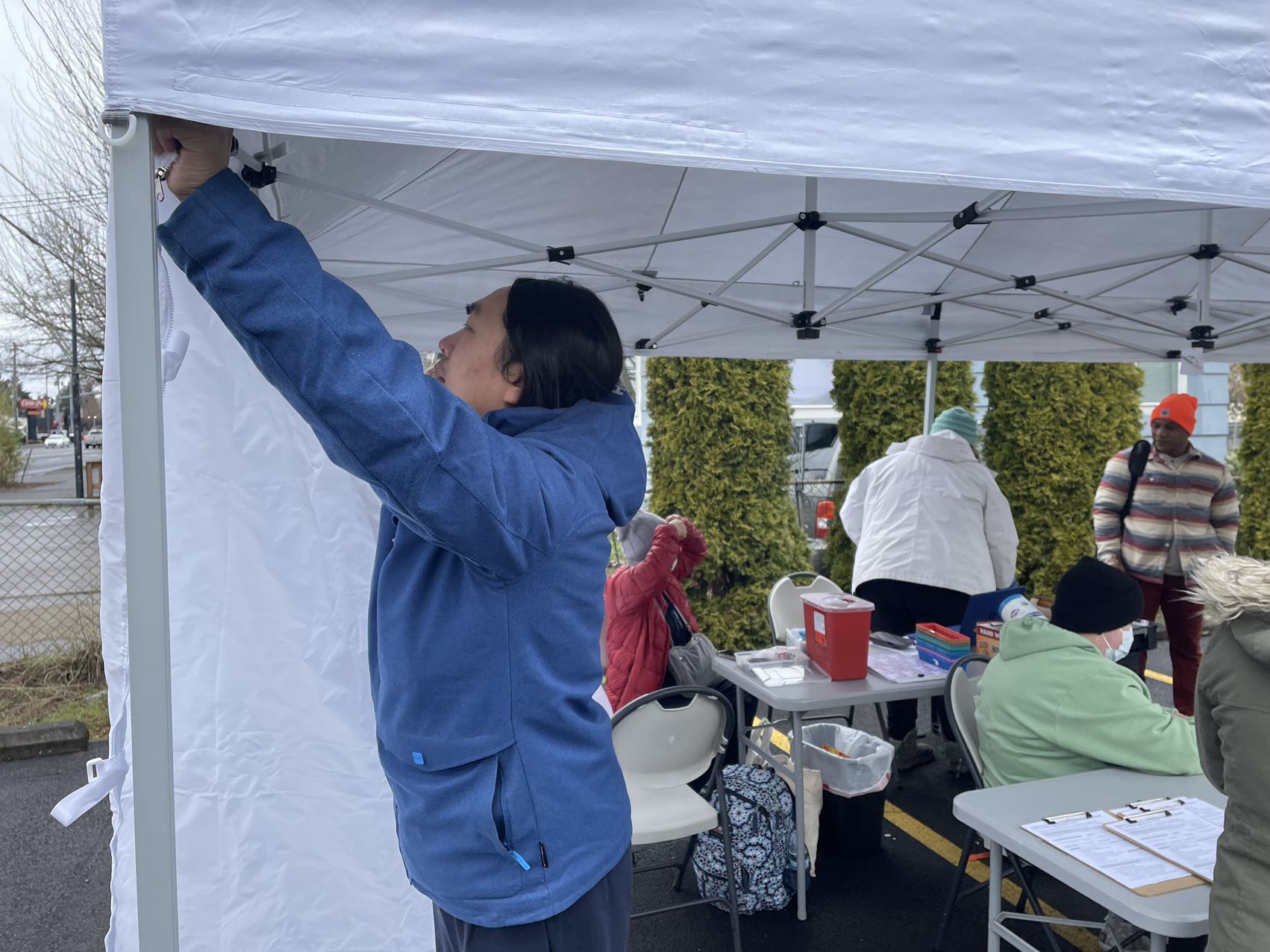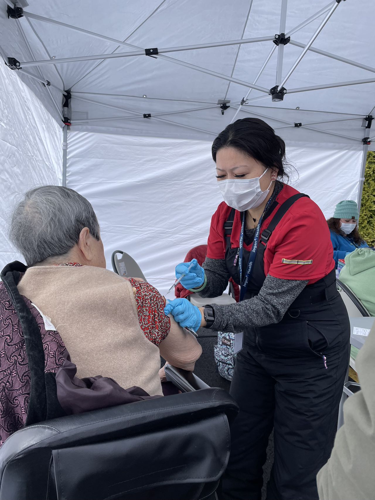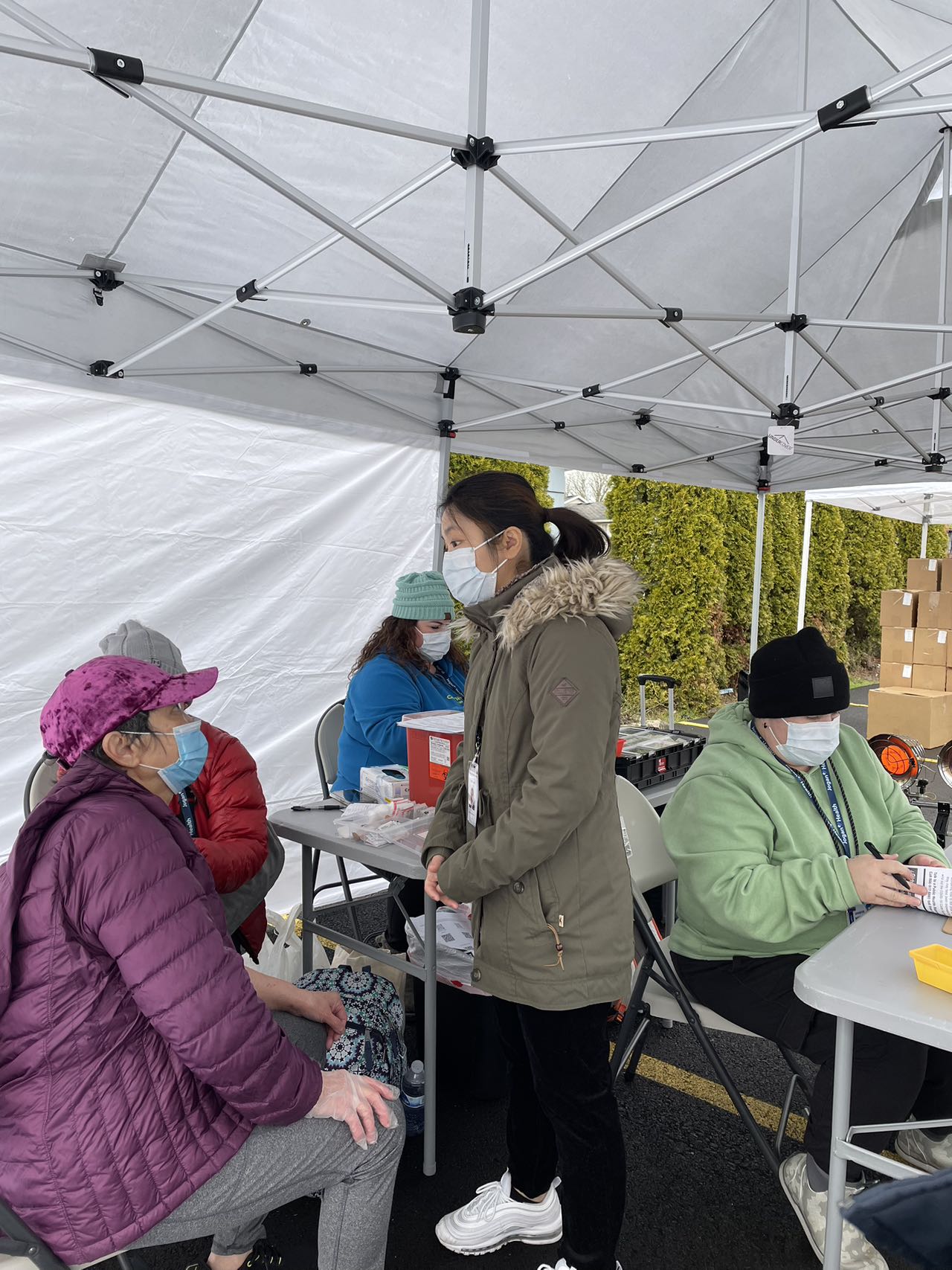 A special vaccination clinic for the seniors in Kirkland Union Manors was successfully held last Sunday in SE Portland thanks to the strong support from the volunteers, OHA and of course those seniors. It was quite a scene in the parking lot of a Chinese restaurant. It went so smoothly and even the weather was very cooperating.