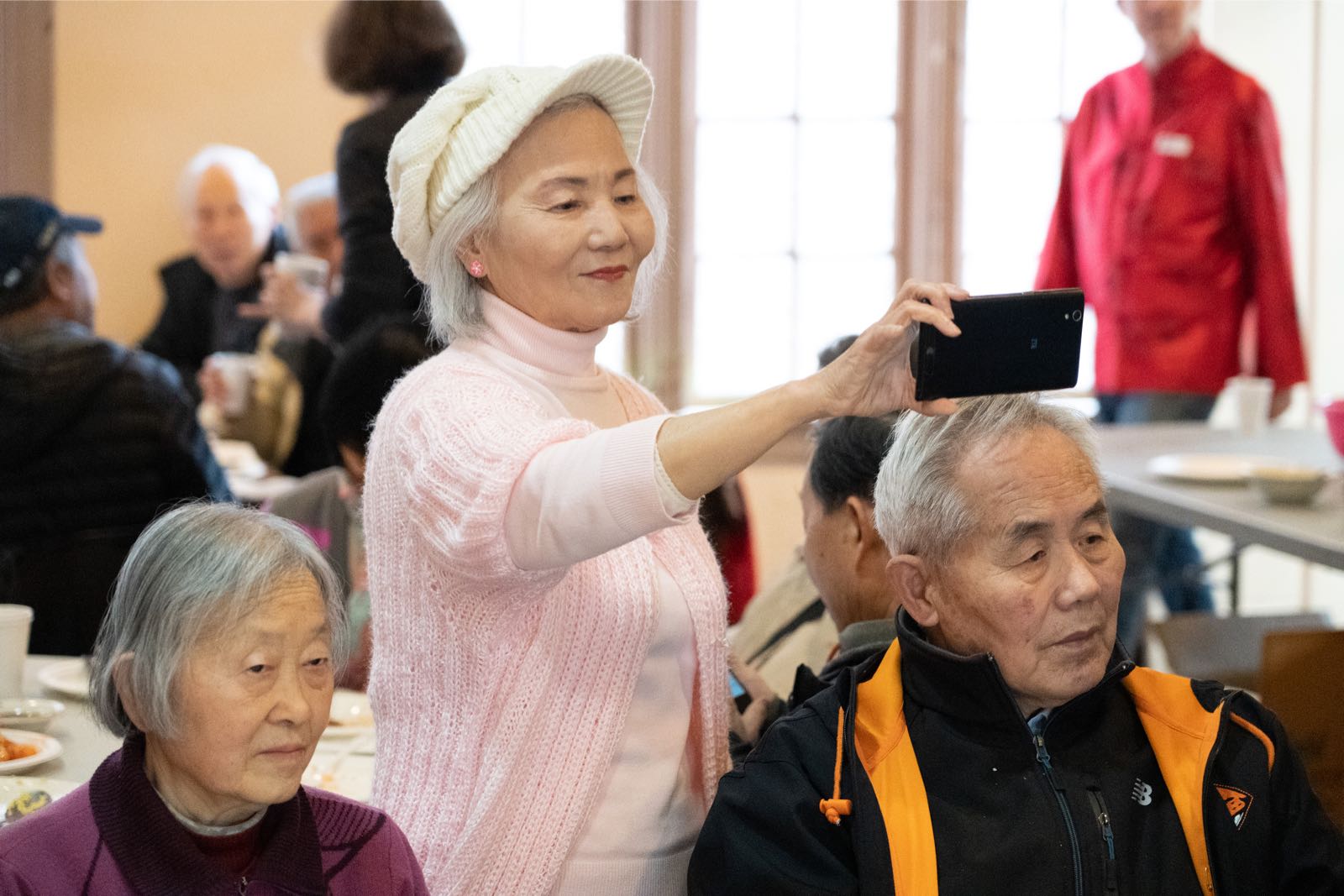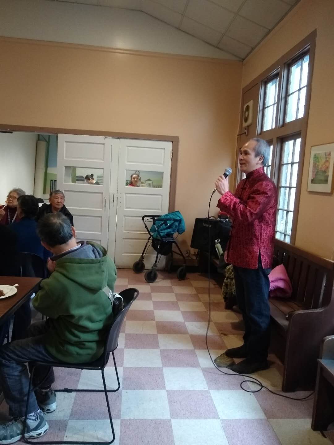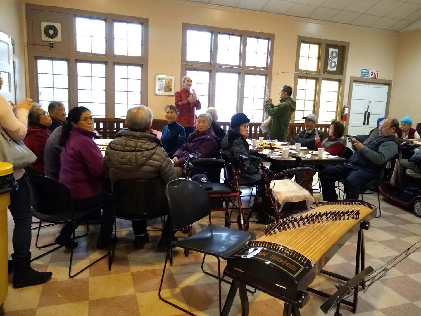 今天的Asian Brunch原本是为春节办的,但上次因为遇上下雪而改在了今天,老人们似乎都忘了有演出这件事了,在吃着饺子的时候,歌声响了起来,大家由惊变喜,随着飞扬的歌声和幽雅的古筝,一贯谦逊到家的老人们也不禁High了起来,掌声不断。老人们纷纷咬着我的耳根子对演出的这件事和参加的群友赞不绝口,要求每个月都吃饺子,言下之意,有饺子吃就有演出,这才有气氛。有些经历过场面的老人说,今天的演出最有气氛,有过年的味,有家的感觉。