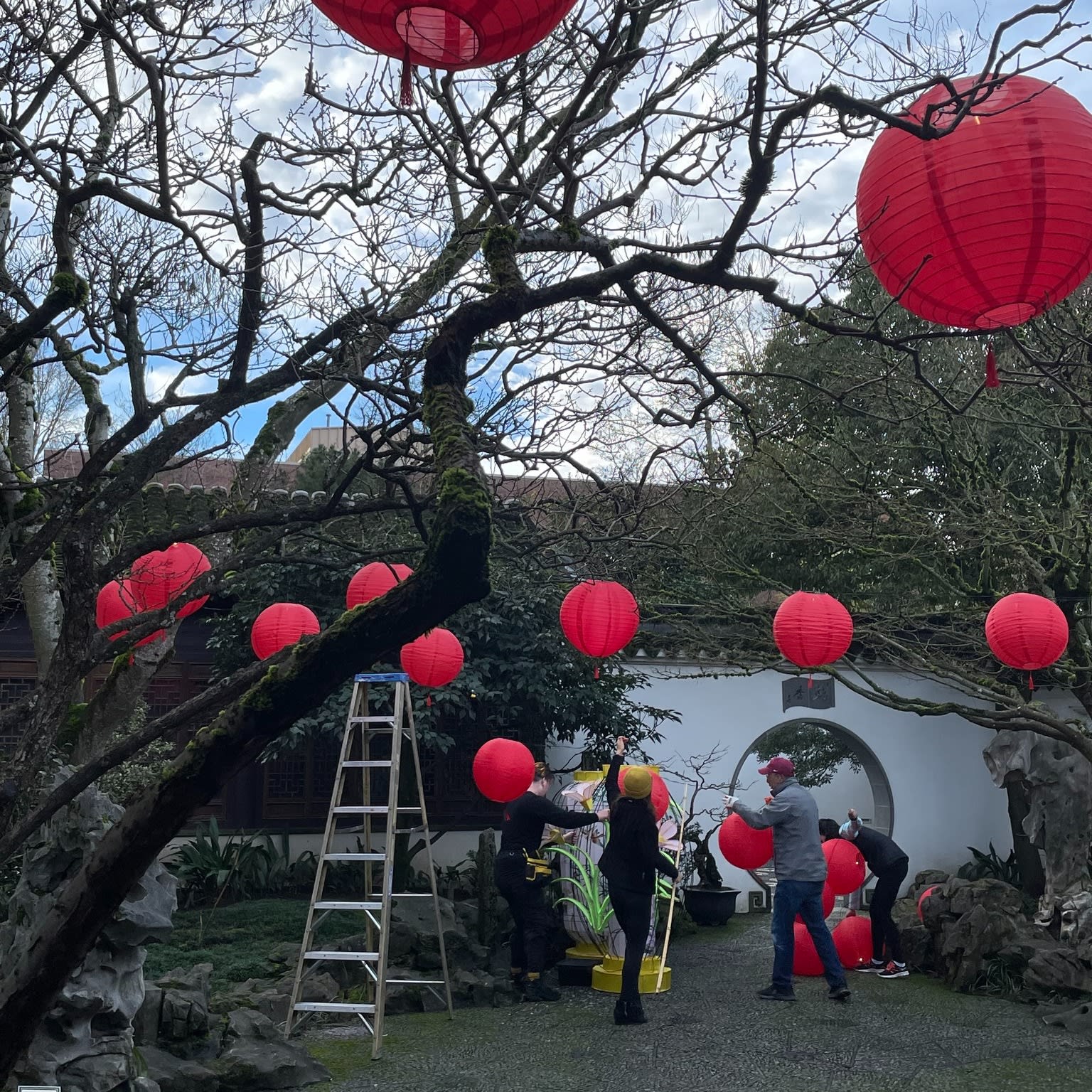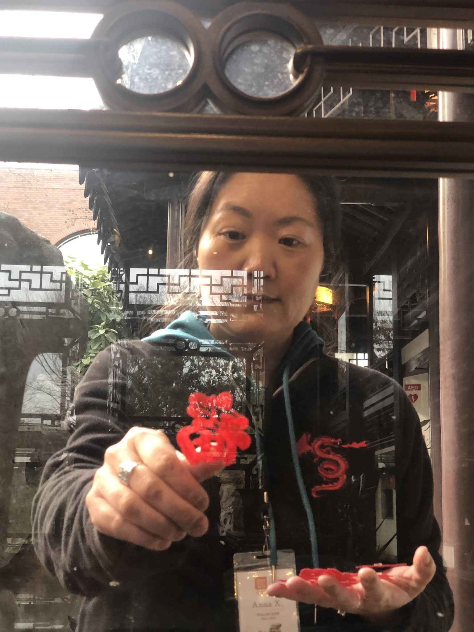 Volunteers came to Lan Su Chinese Garden this week to hang up lanterns and create window decorations. We had a lot of fun with the lanterns and enjoyed the magic of creating a festive atmosphere with our own hands. Thank you, Lan Su Chinese Garden for giving us the opportunity.