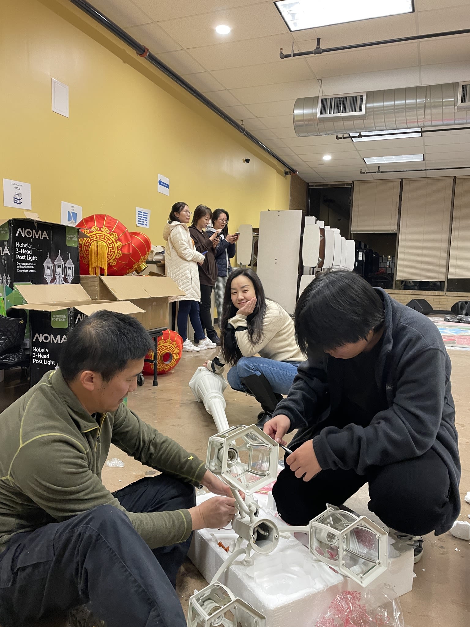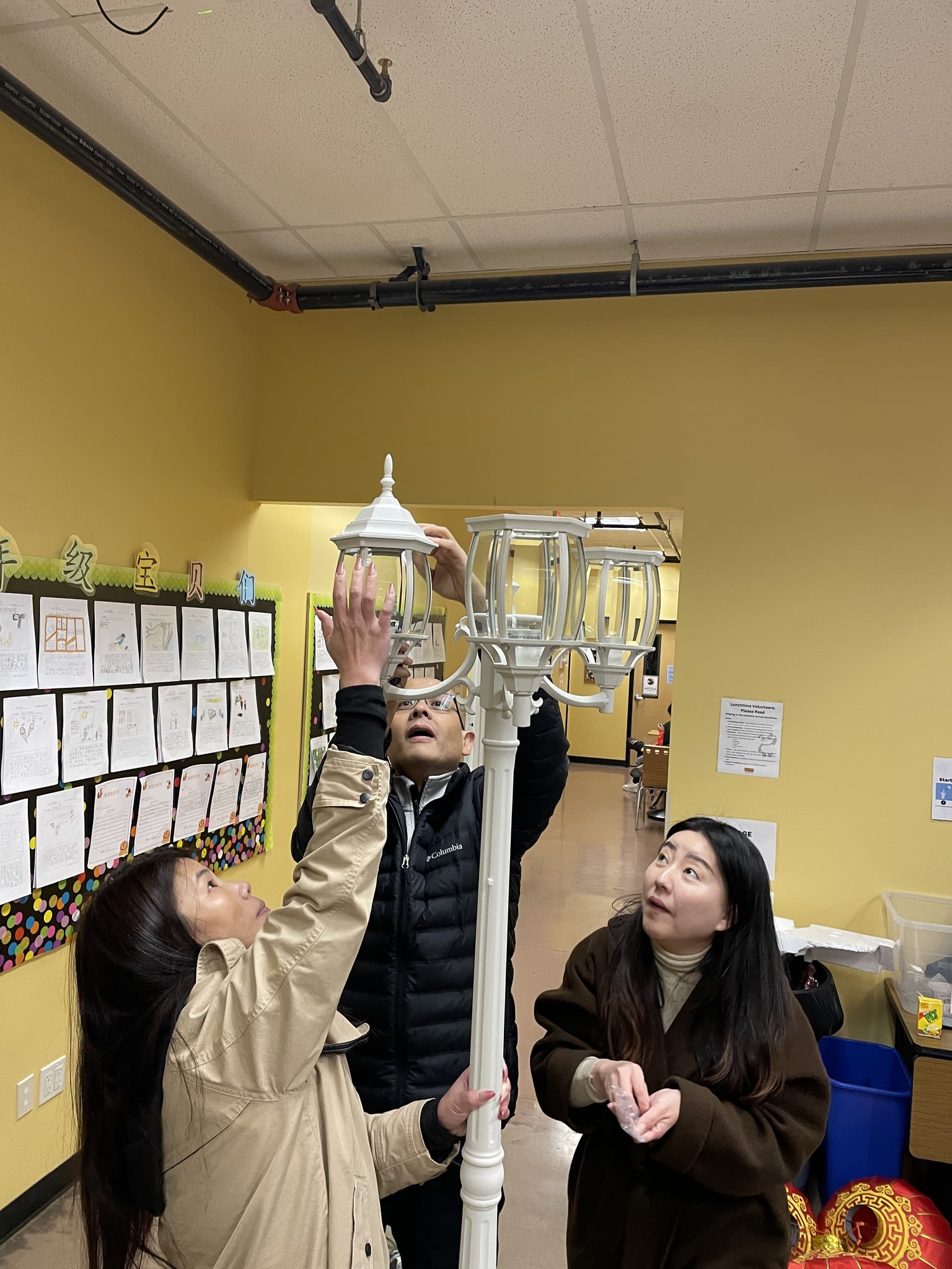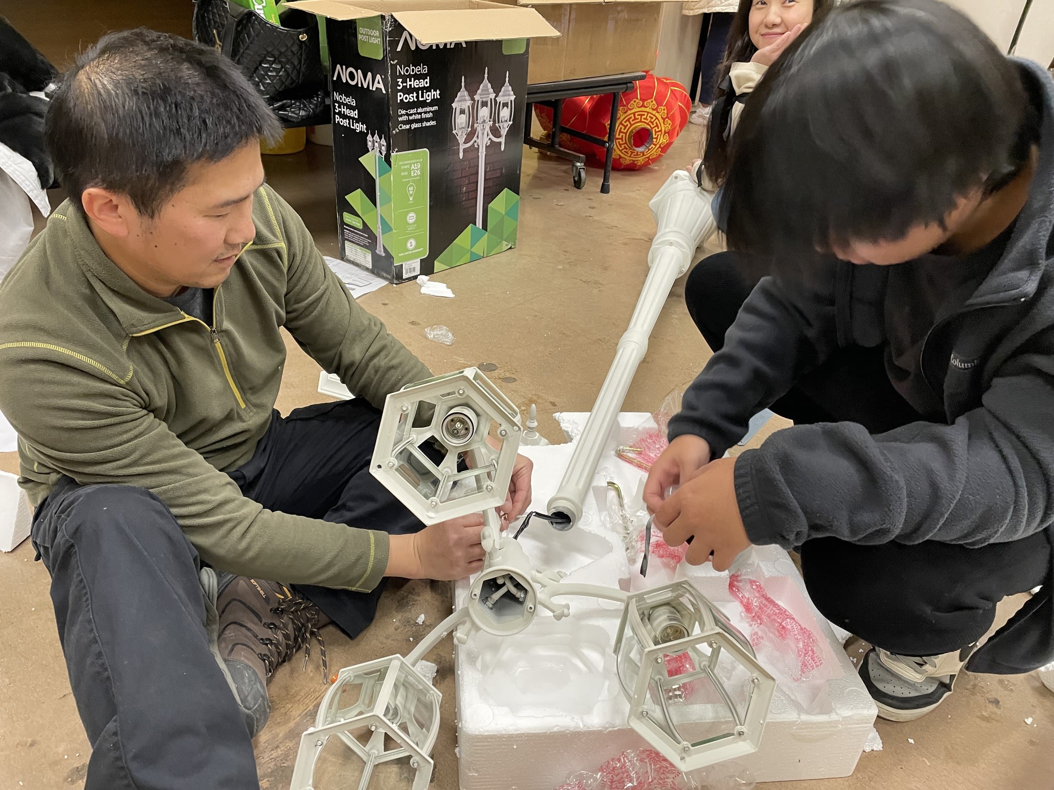 就在同一个下午,一些参加过感恩节聚餐的新移民家庭也撸起袖子,组装了两根灯杆,这些灯杆将用于本月晚些时候在社区文化表演活动。