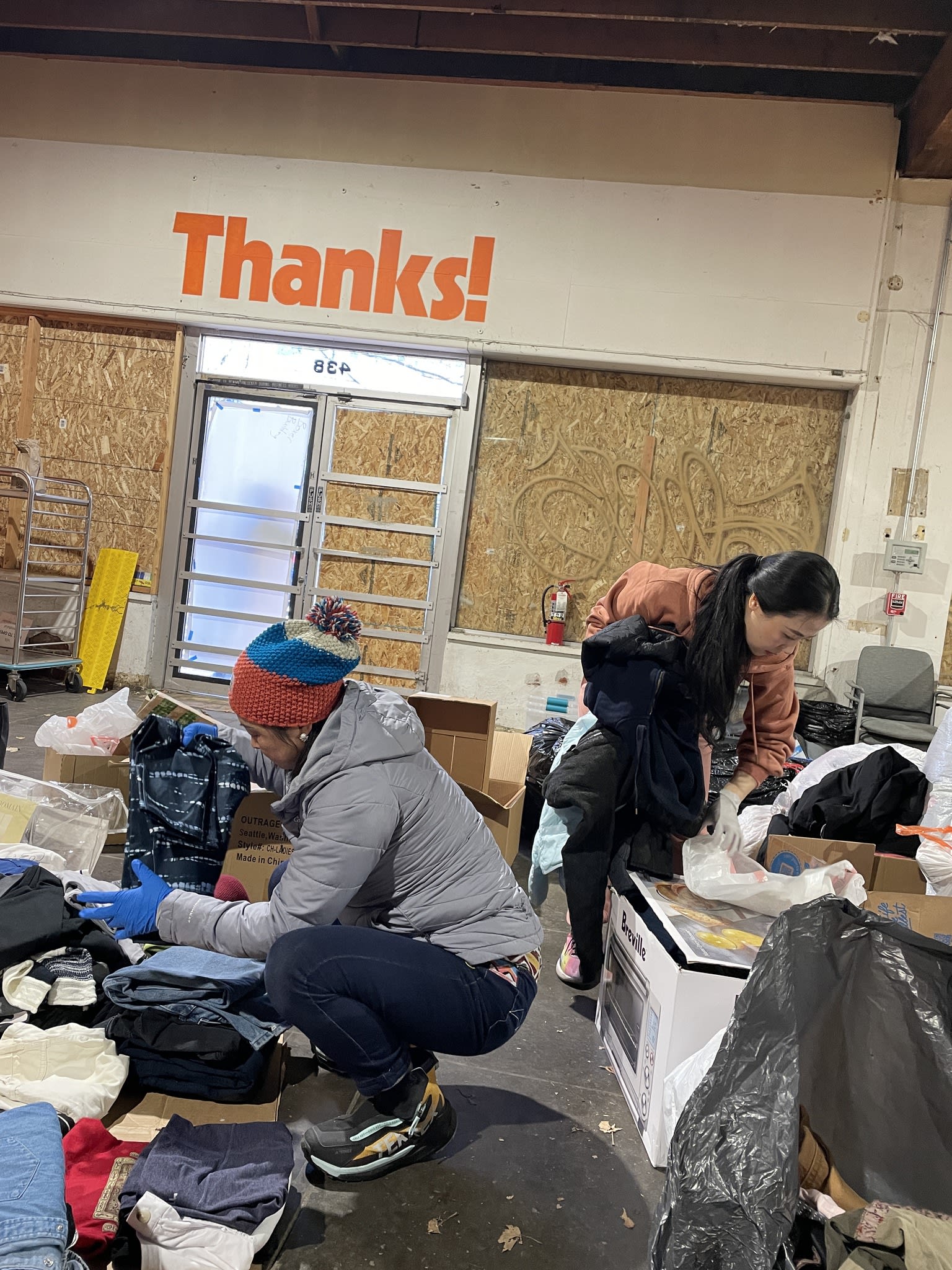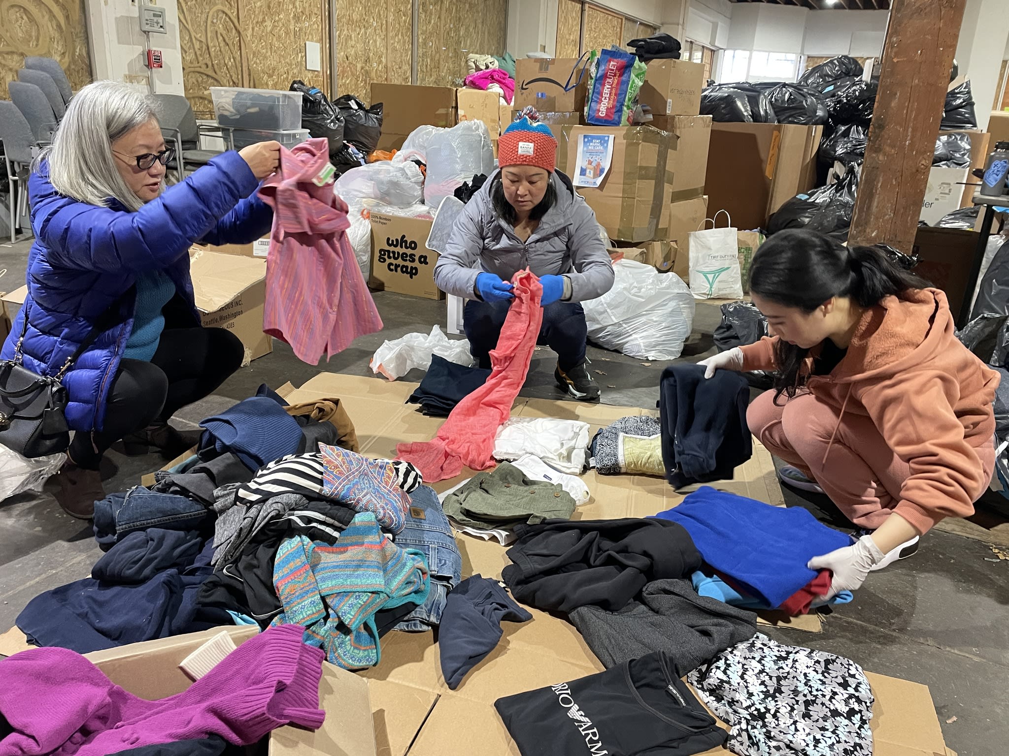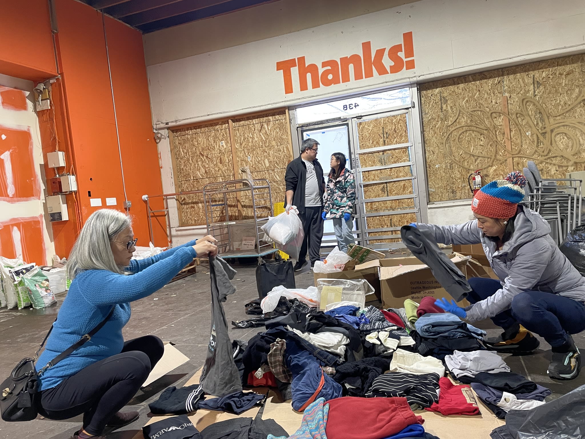 After a late-night call for volunteers, a group of community members came together the next morning at the Transition Projects’ warehouse to sort through donation items.