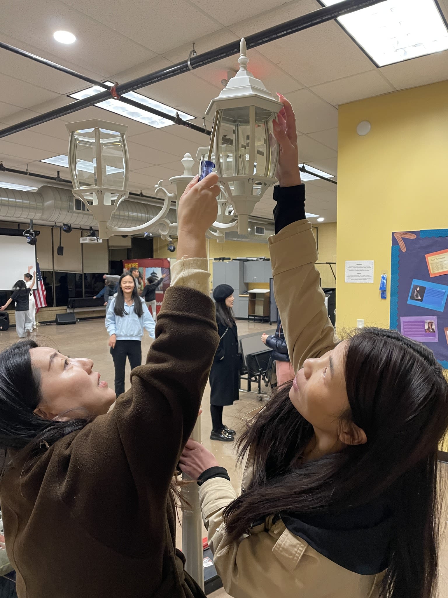 That same afternoon, a few newly immigrated families who had attended the Thanksgiving potluck rolled up their sleeves to assemble two light poles which are going to be used for their upcoming performance at an NBA game later this month.