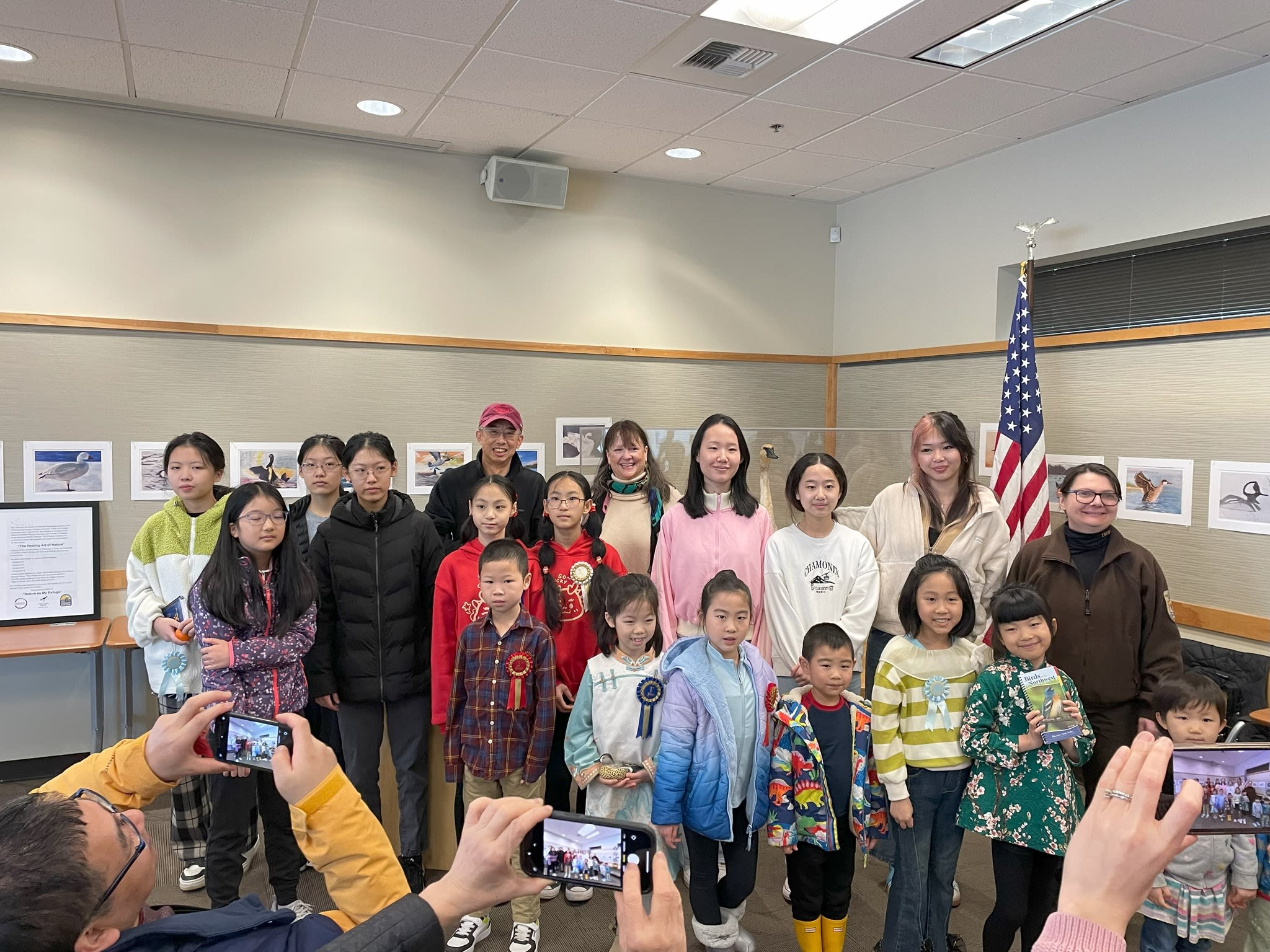 The award ceremony for the youth art contest took place on Saturday morning at the Tualatin River National Wildlife Refuge. Sixteen young artists from the community were honored, and Emily Lian from Sunset High School received the Best of Show award along with a $500 scholarship. Bonnie Anderson, the Executive Director of the Friends of the Refuge , single-handedly managed all the behind-the-scenes work. We are immensely grateful for the partnership with the Refuge and the support from the Friends.