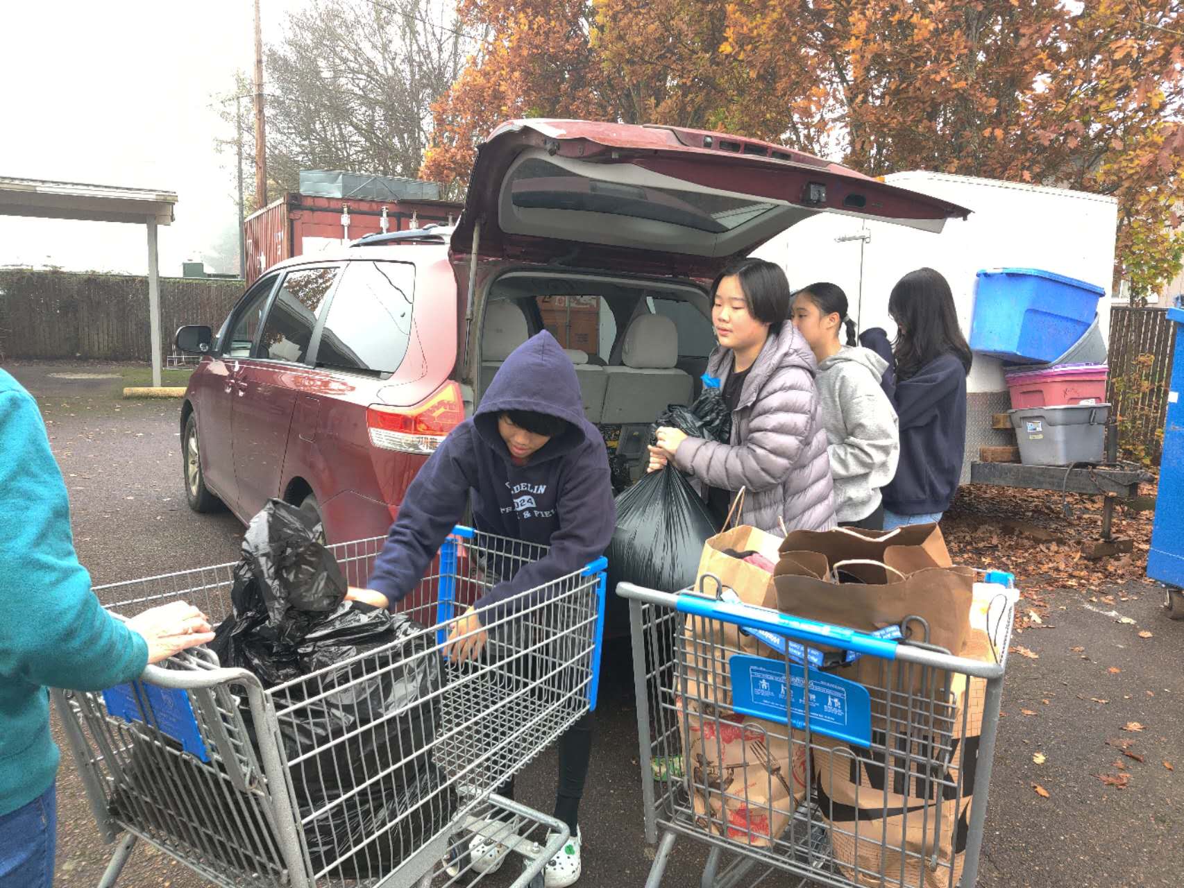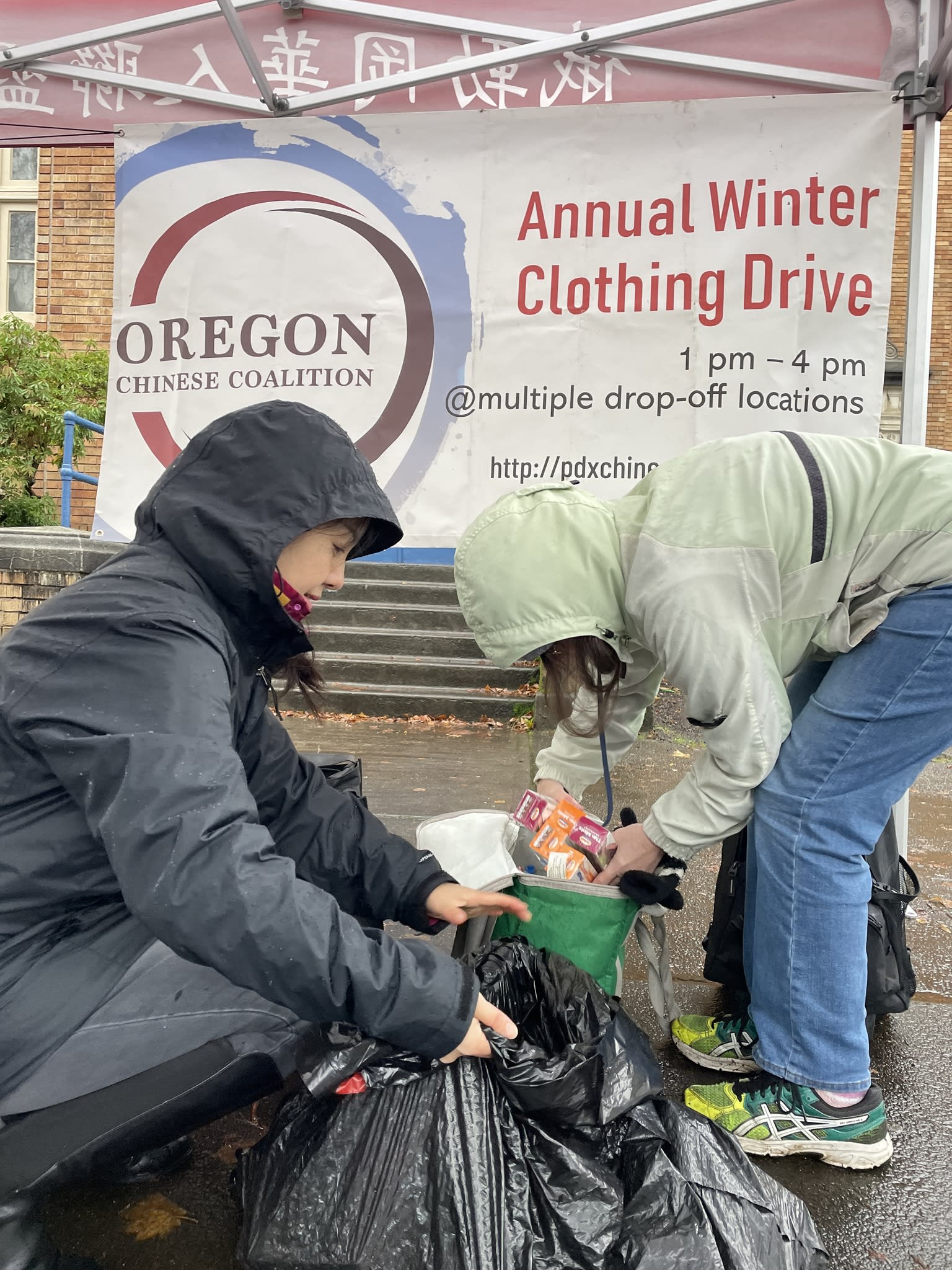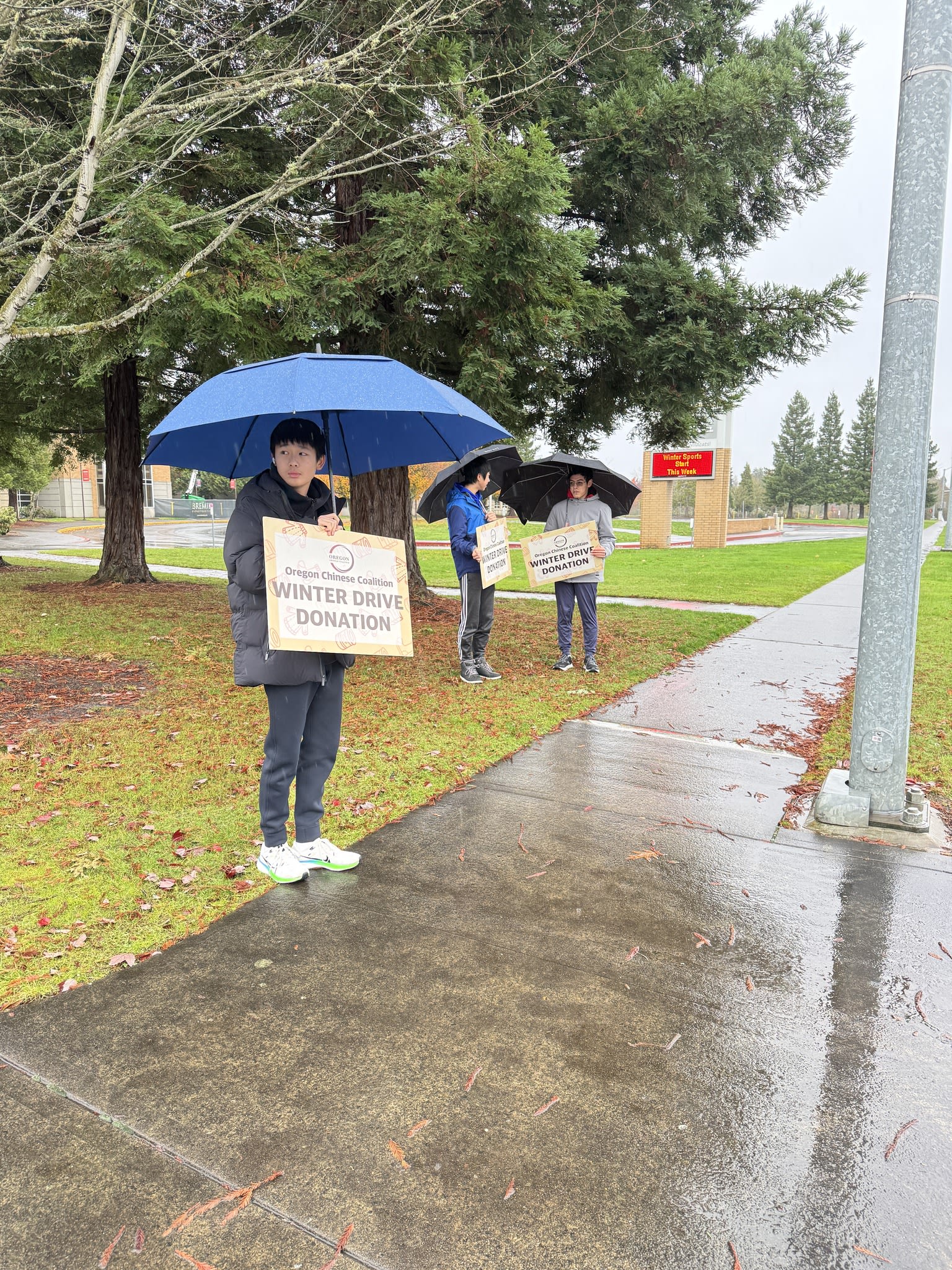 Challenging weather made our youth volunteers even stronger! The 7th annual Community Winter Drive successfully concluded yesterday, despite relentless rain throughout the event. Forty-five students across eight locations collected just as many donations as in previous years. A heartfelt thank you to Transition Projects, Inc. in Portland and Vina Moses Center in Corvallis for accepting this year’s contributions.