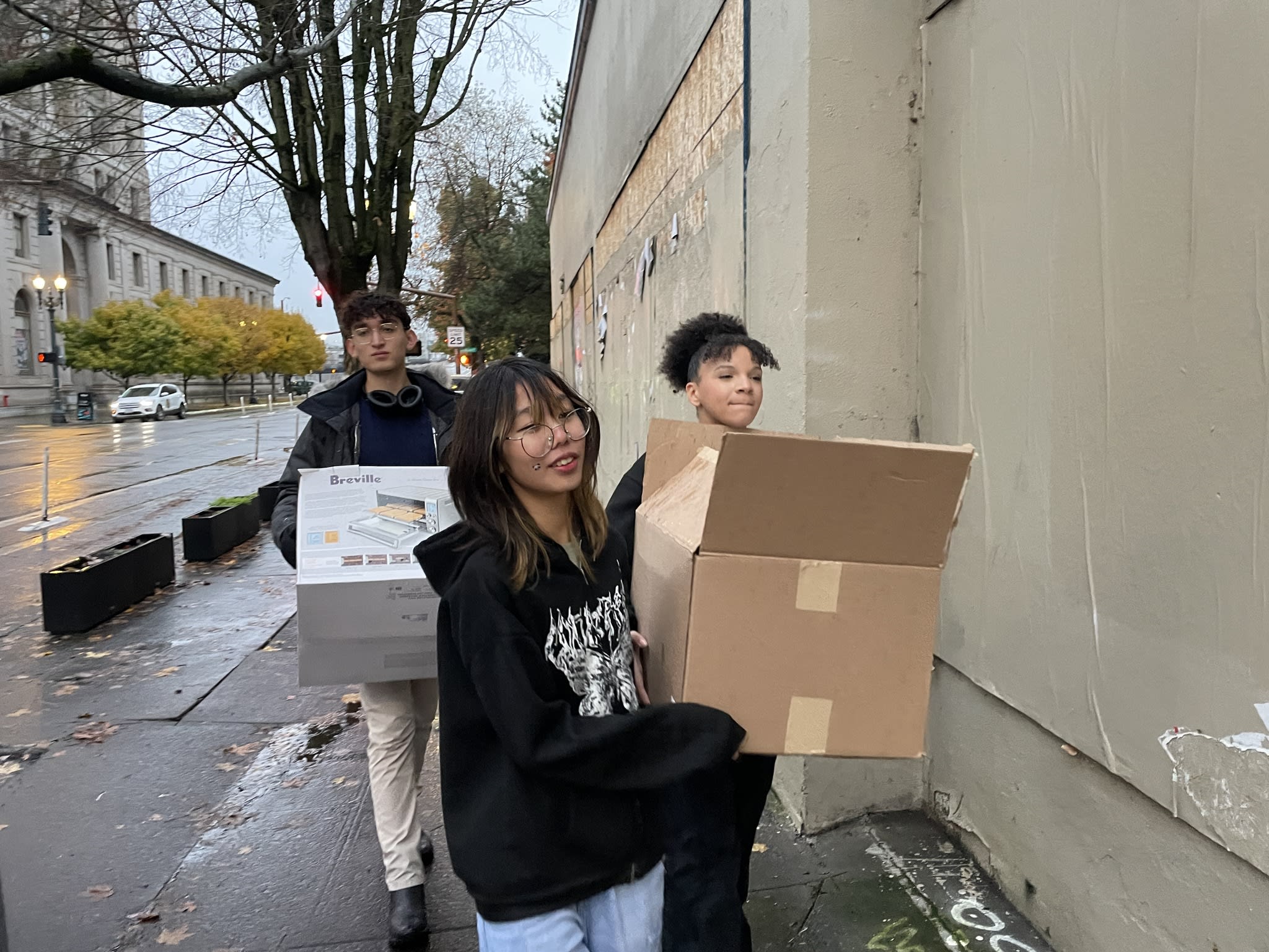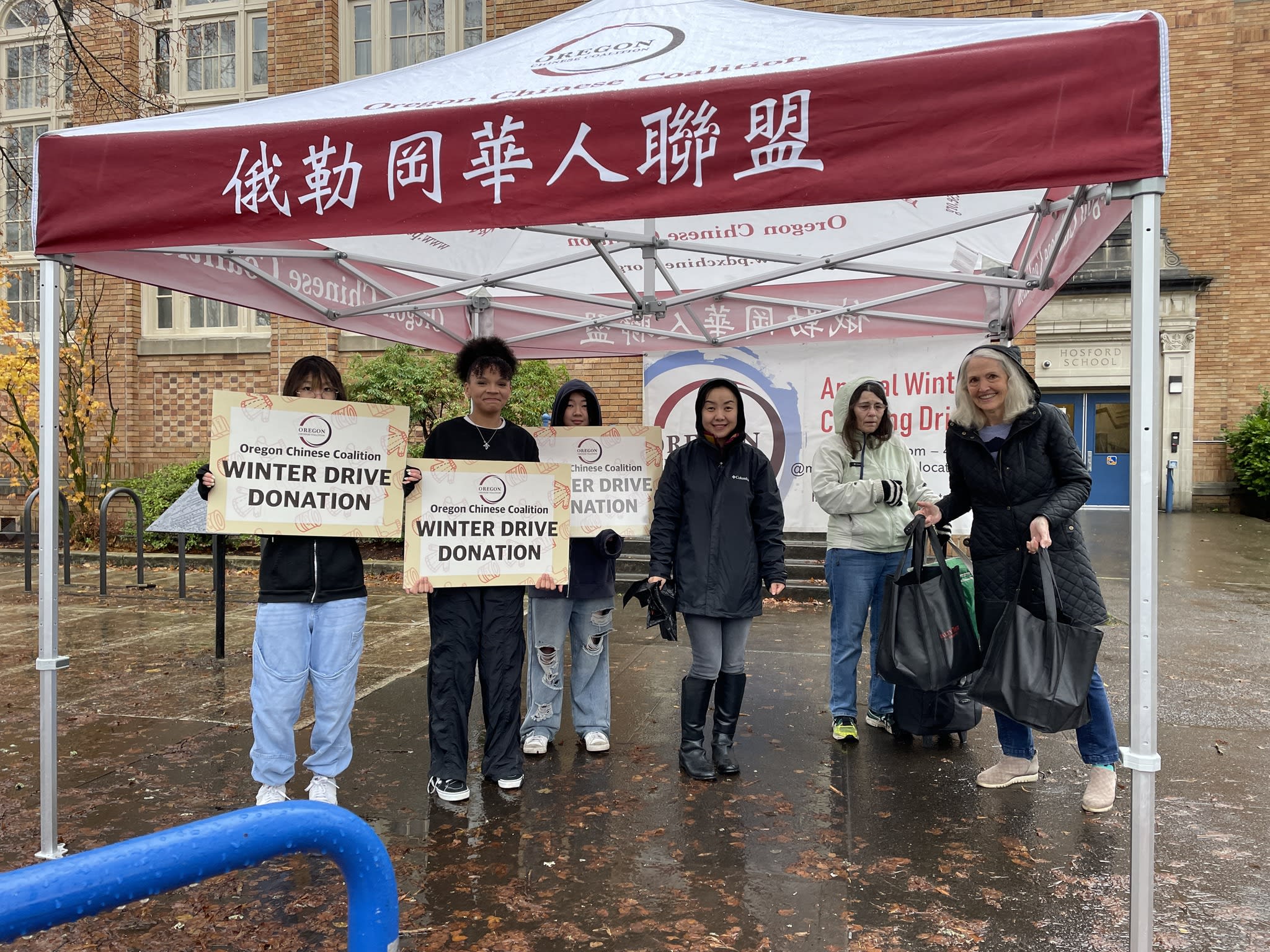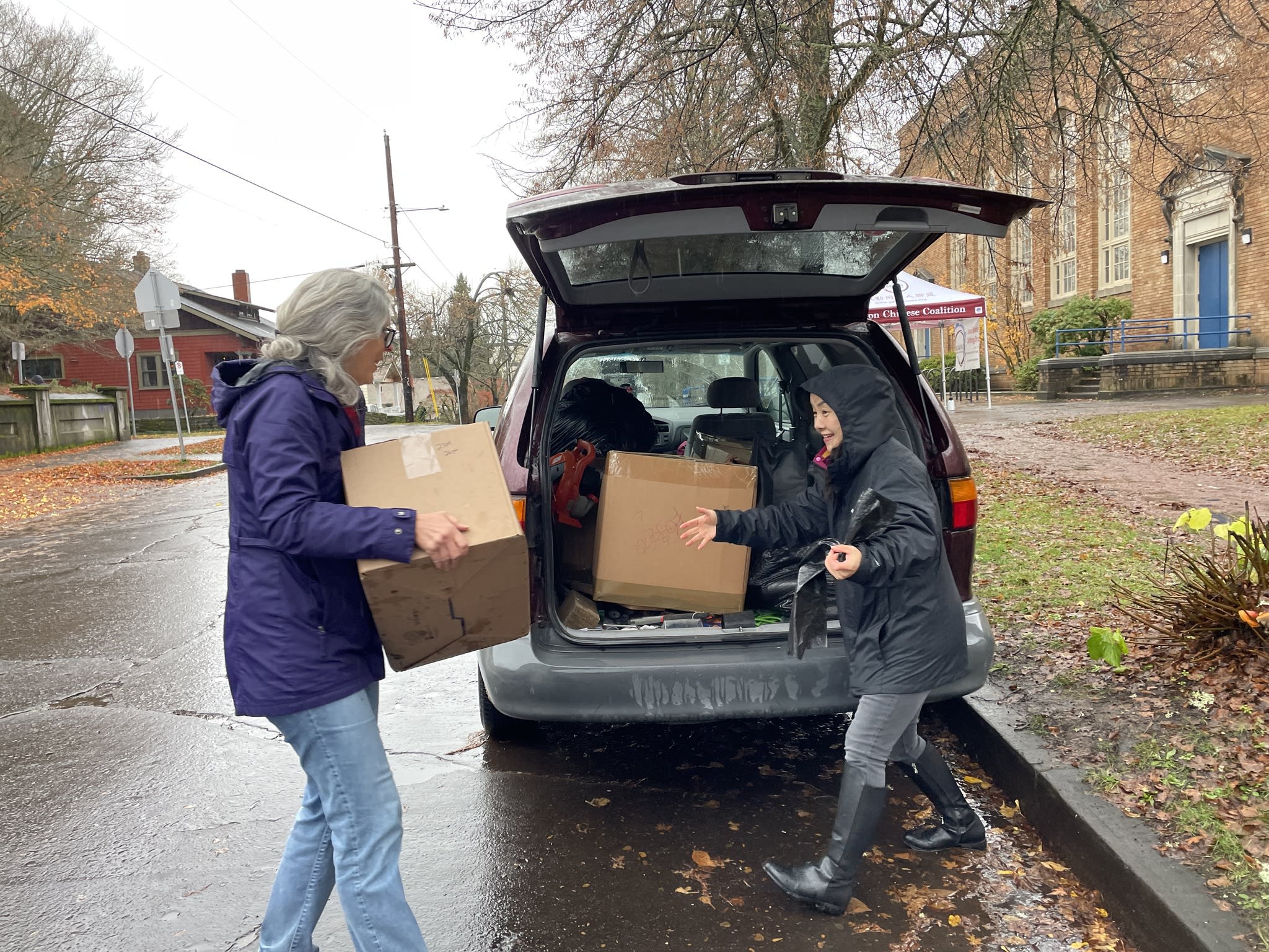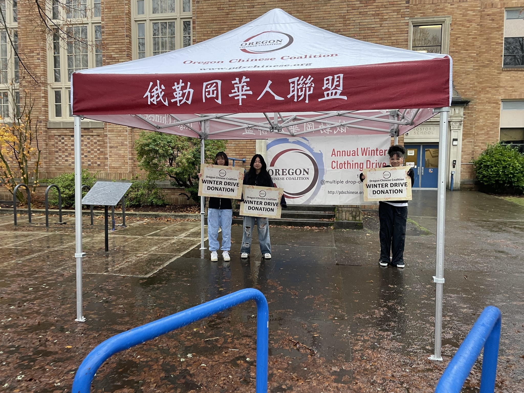 Challenging weather made our youth volunteers even stronger! The 7th annual Community Winter Drive successfully concluded yesterday, despite relentless rain throughout the event. Forty-five students across eight locations collected just as many donations as in previous years. A heartfelt thank you to Transition Projects, Inc. in Portland and Vina Moses Center in Corvallis for accepting this year’s contributions.