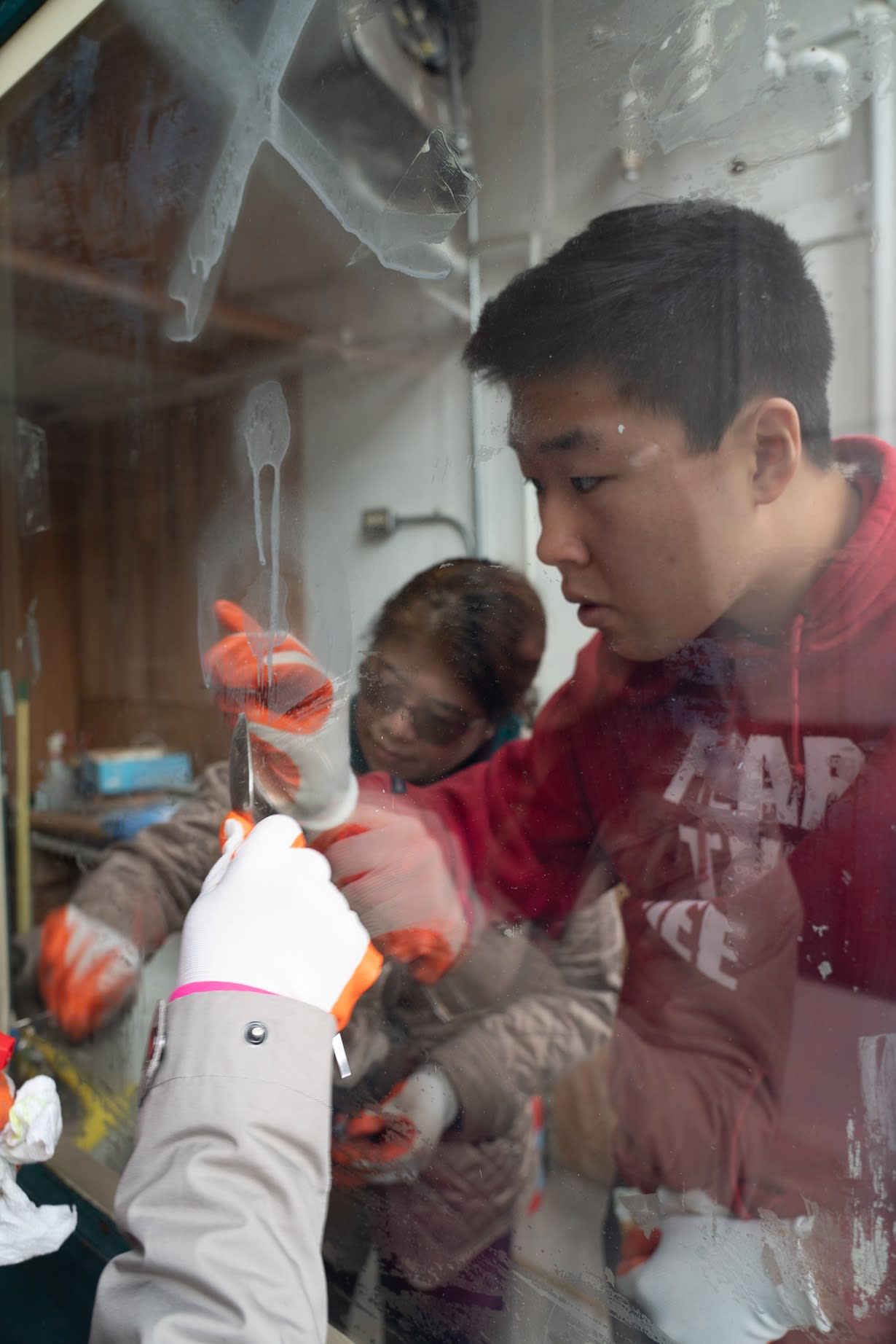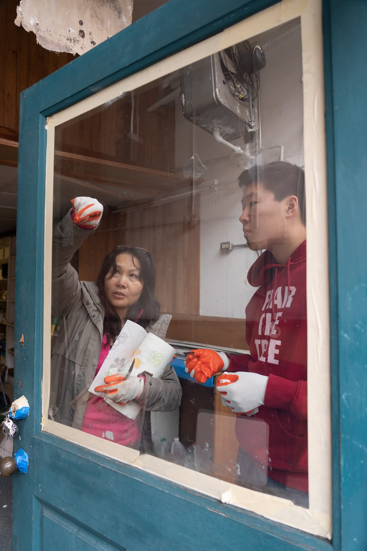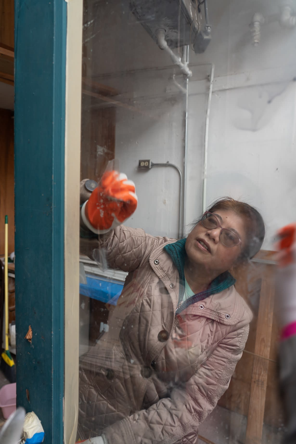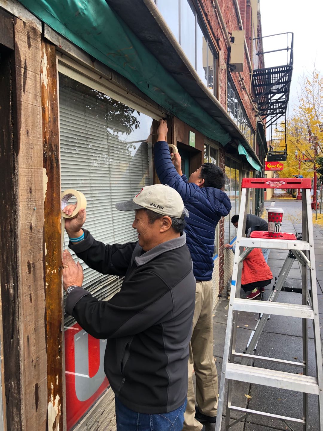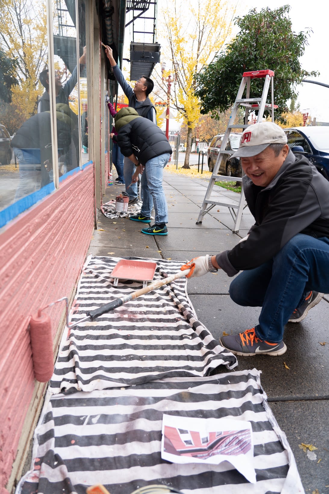 周日Wong Laundry building的股东和家属们到了中国城,前一个星期邻居业主帮做了powerwashing,这次大家过来粉刷外墙和清洗窗户。中国城不多见这样的一组人,各个知性十足,在公司和各自领域各领风骚。平时在家里估计也是很少干这种事的,尤其是我们的男同胞们,刷油漆也是平生第一次。为了帮助改变neighborhood的容貌,大家聚在了一起。几个小时过后,建筑外表发生了“巨变”,楼里面积攒了近半个世纪的尘埃也被打扫一空。下一步,我们会尽快做好posters,让街区的这一段变成吸引游客顿足的一景。