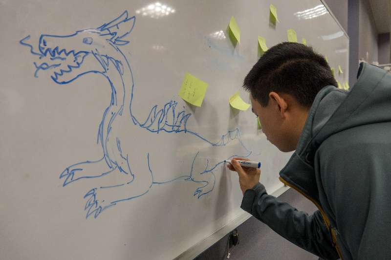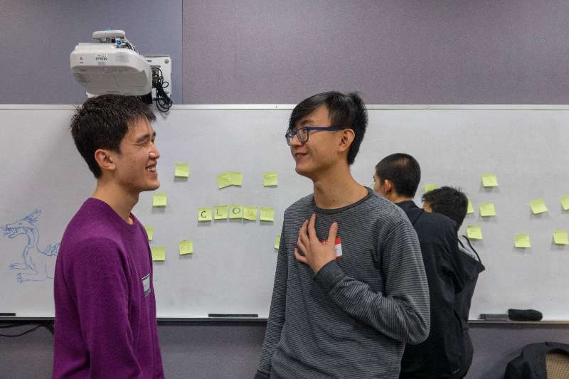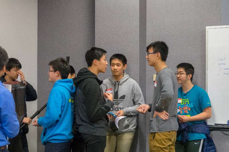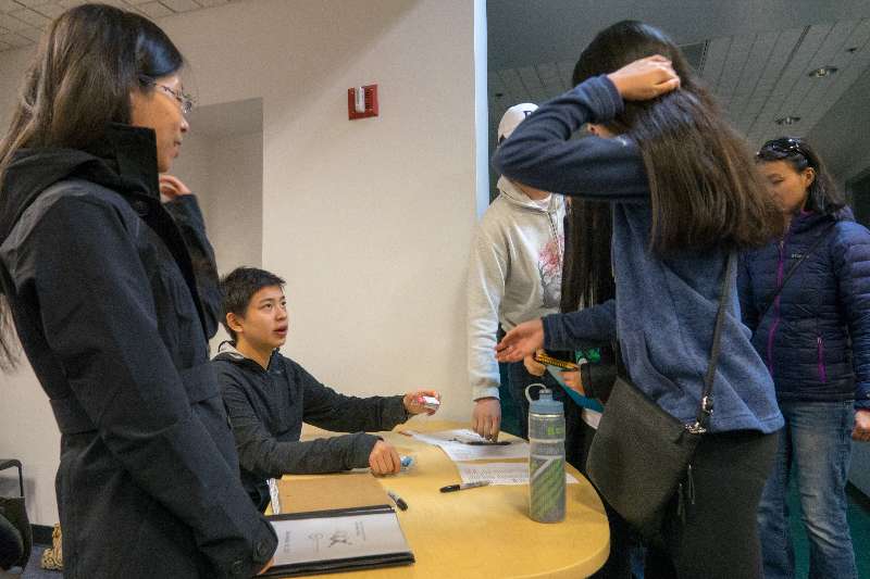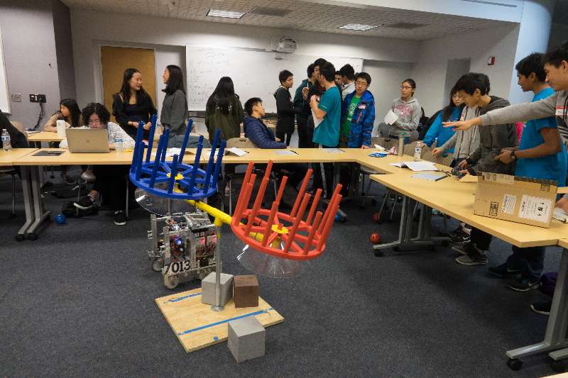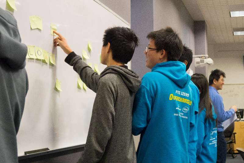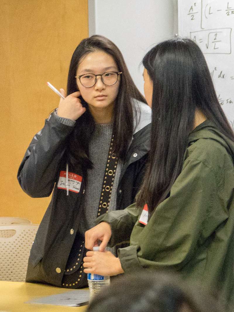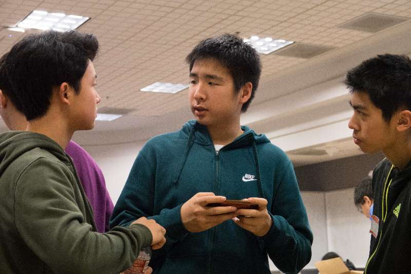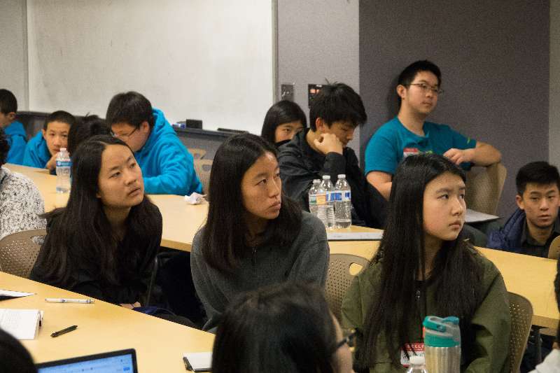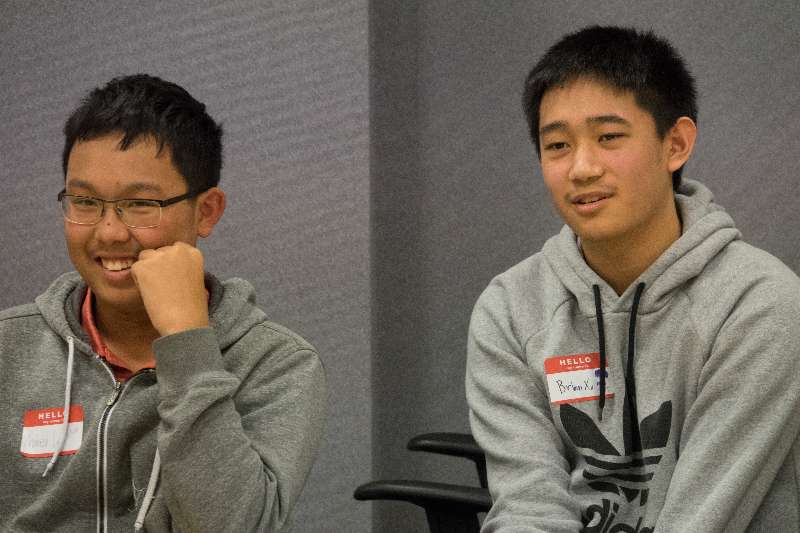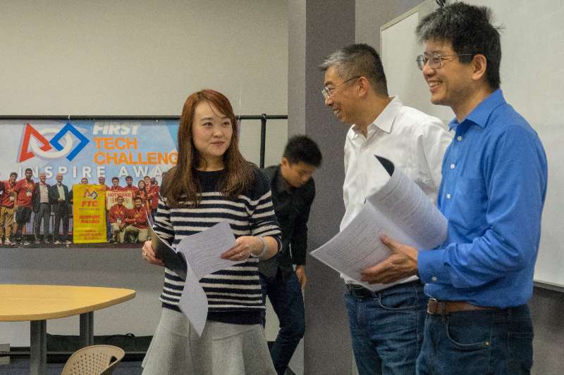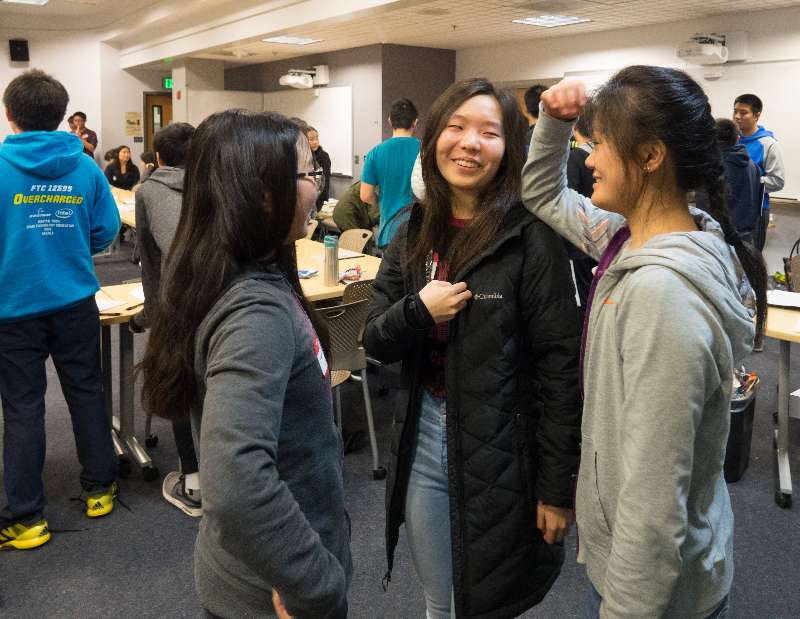 下面是中间休息的半个小时,除了观摩FTC表演之外,很多高中生抓紧时间找到大学生和毕业生们,要么做自我介绍,要么继续提问。