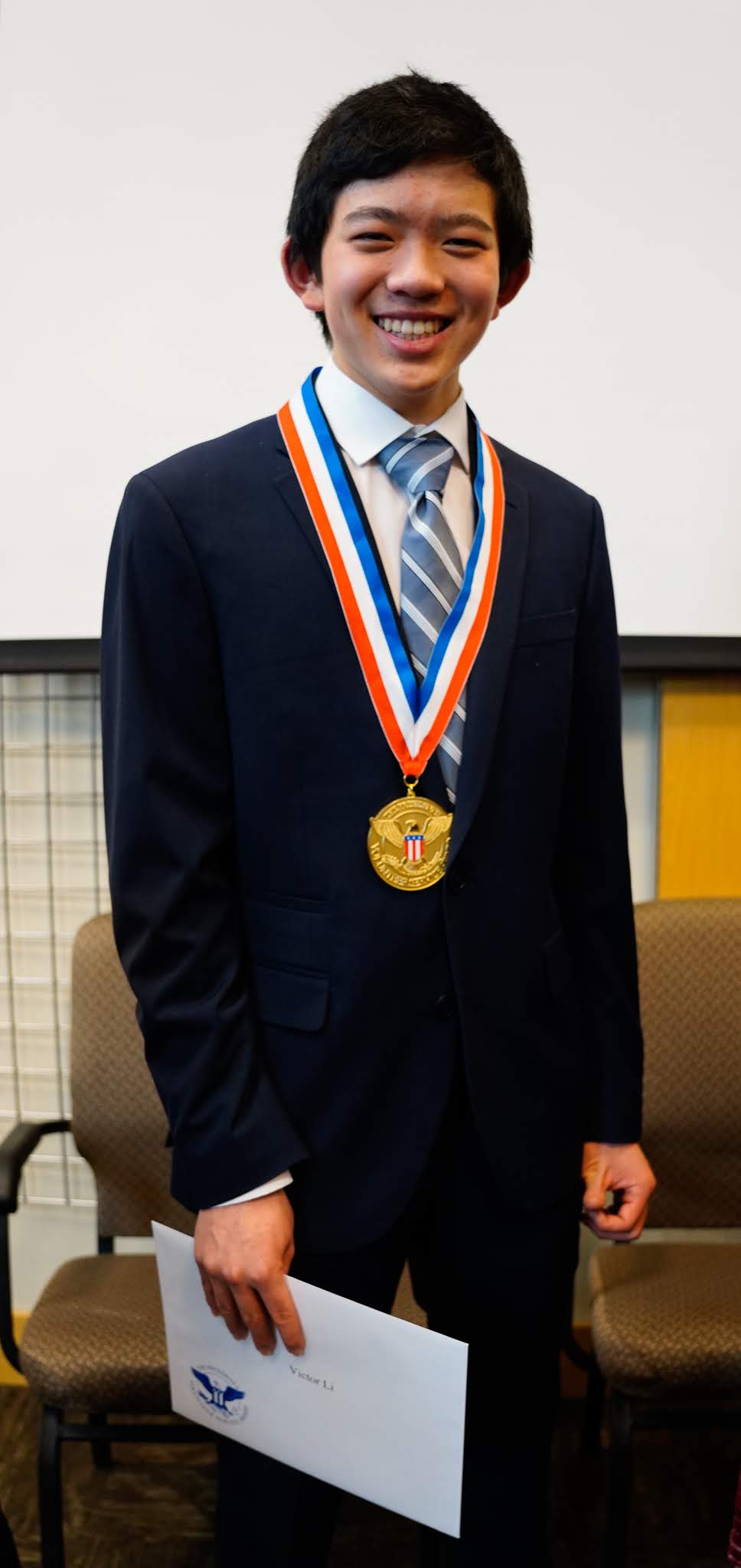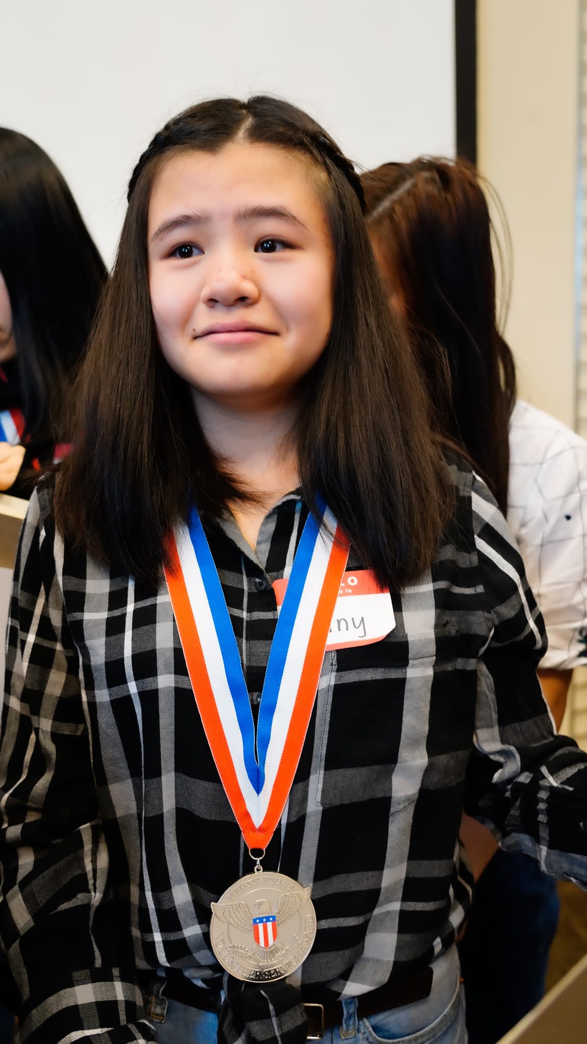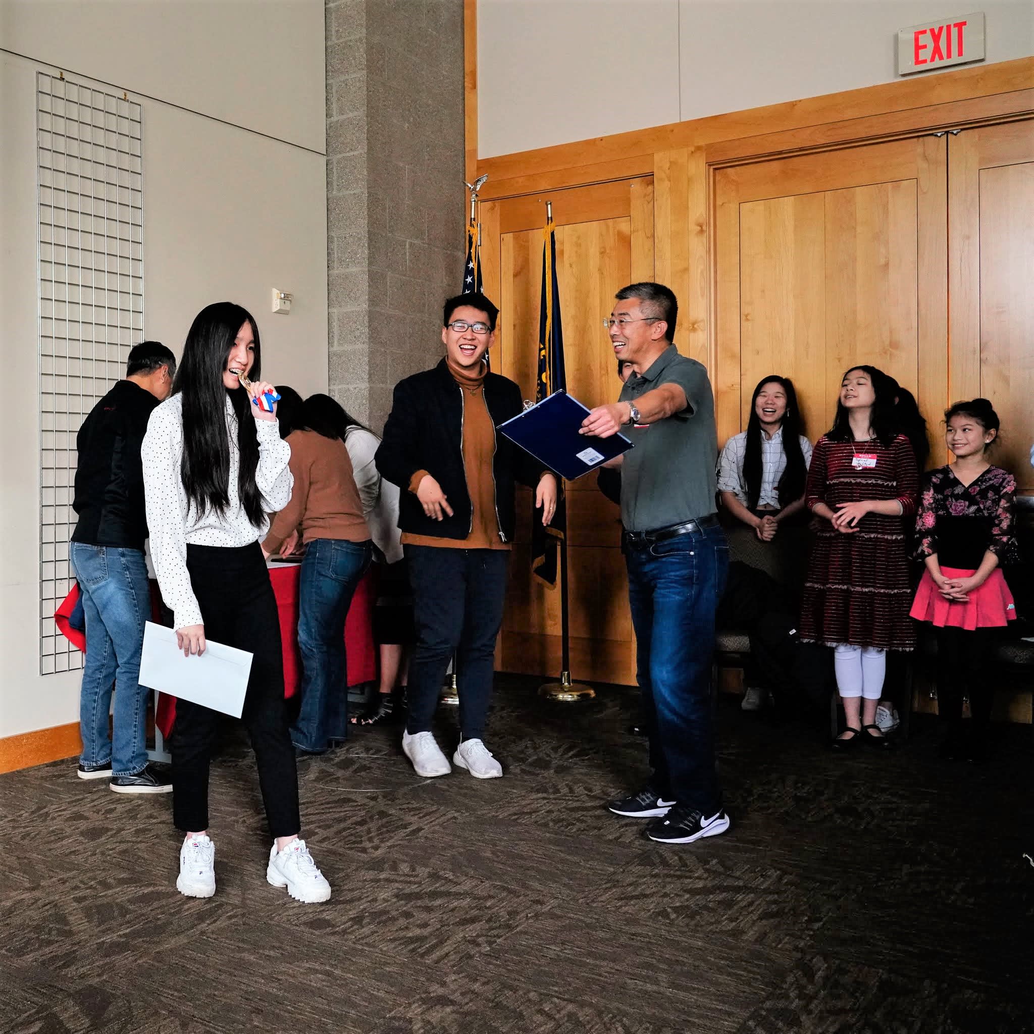 看完录像之后,我们邀请mentors和大学生毕业生们上前,在同学和家长们的见证下,给每一位获奖者颁发奖章和证书。