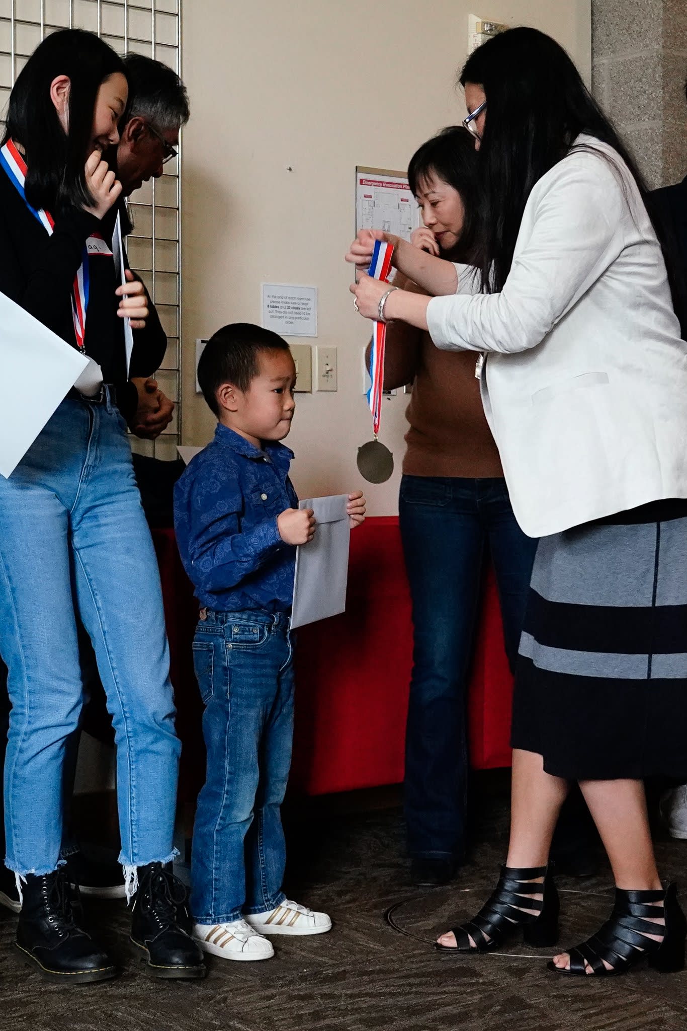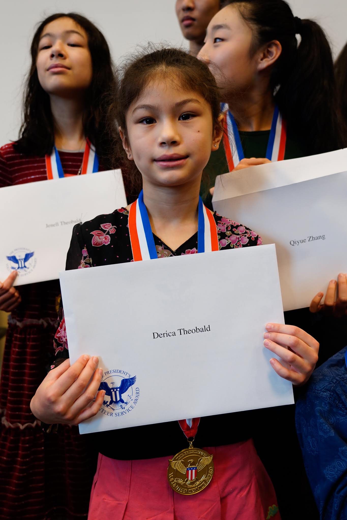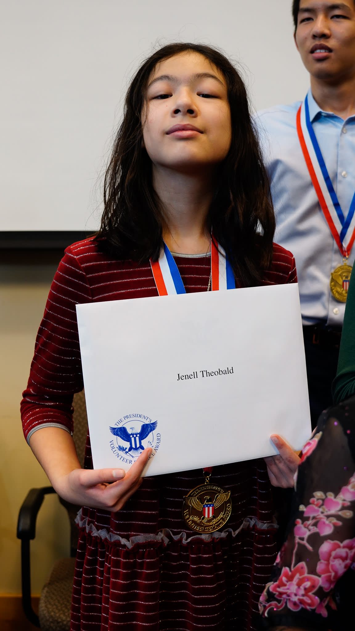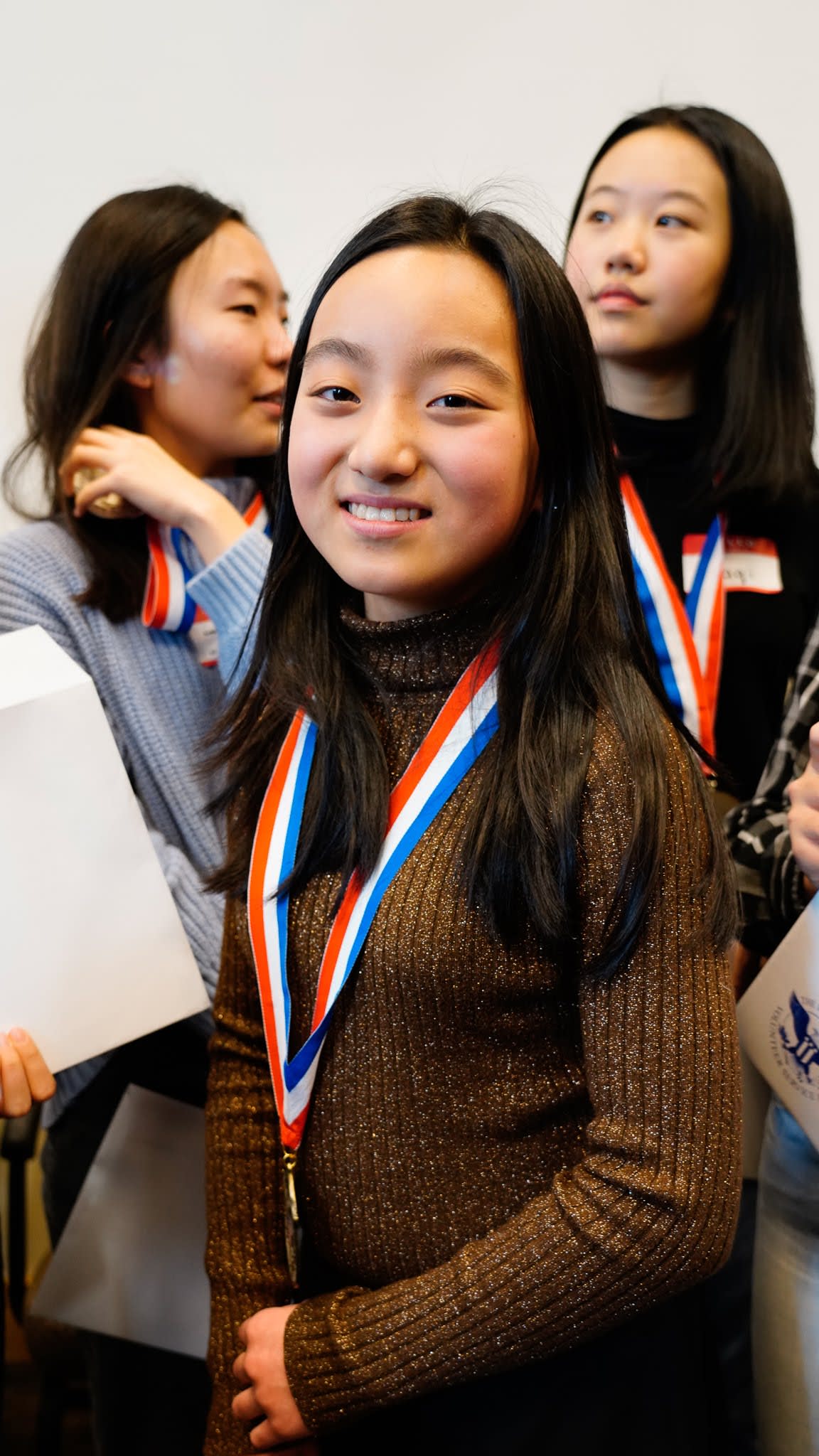 看完录像之后,我们邀请mentors和大学生毕业生们上前,在同学和家长们的见证下,给每一位获奖者颁发奖章和证书。