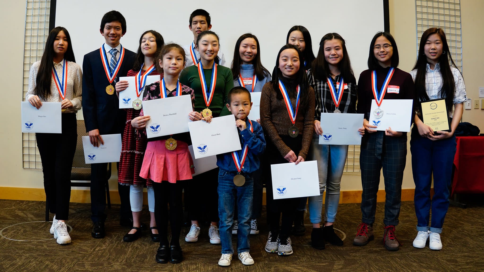 今年获得总统义工奖和社区义工奖的13位同学们