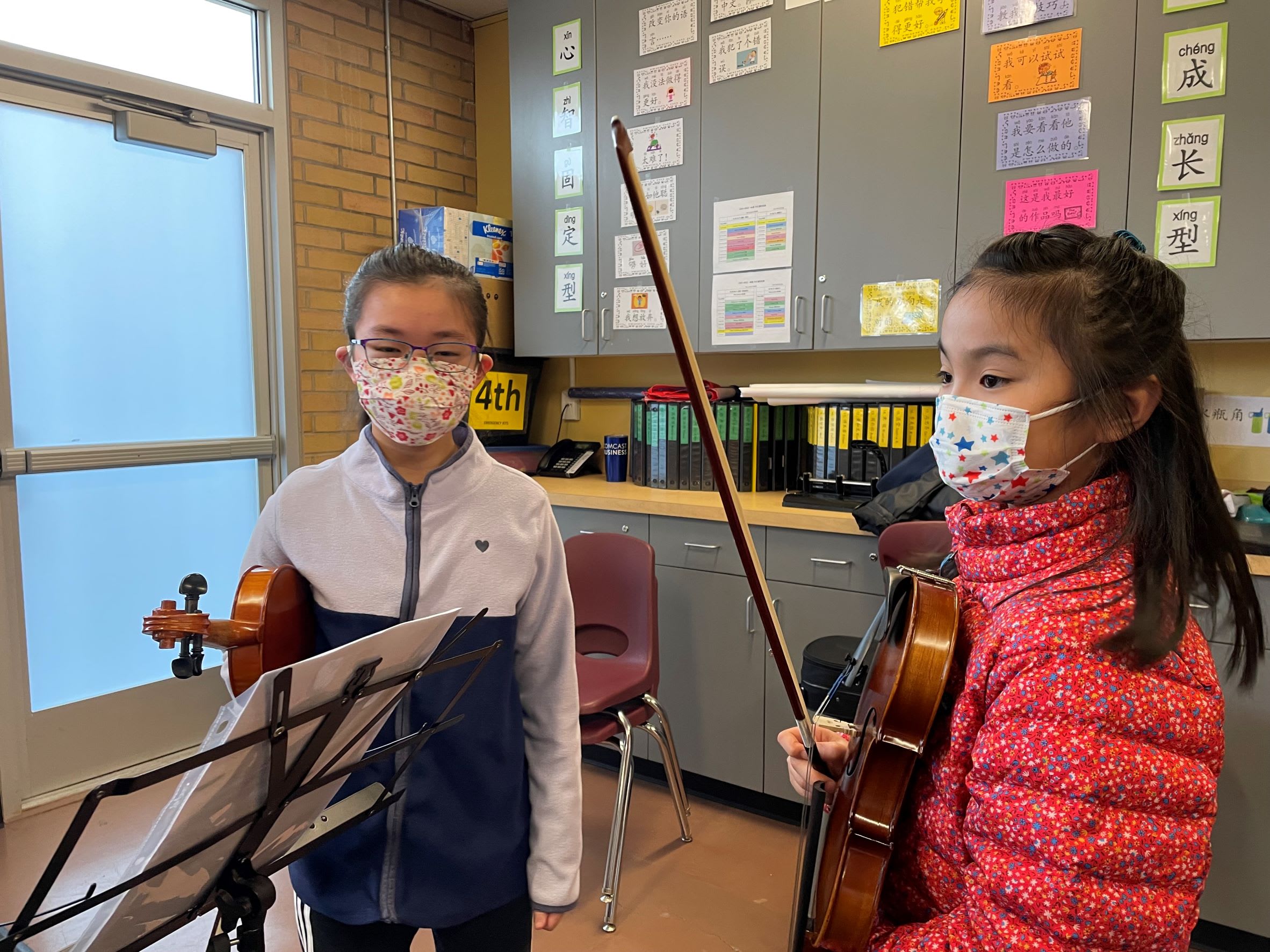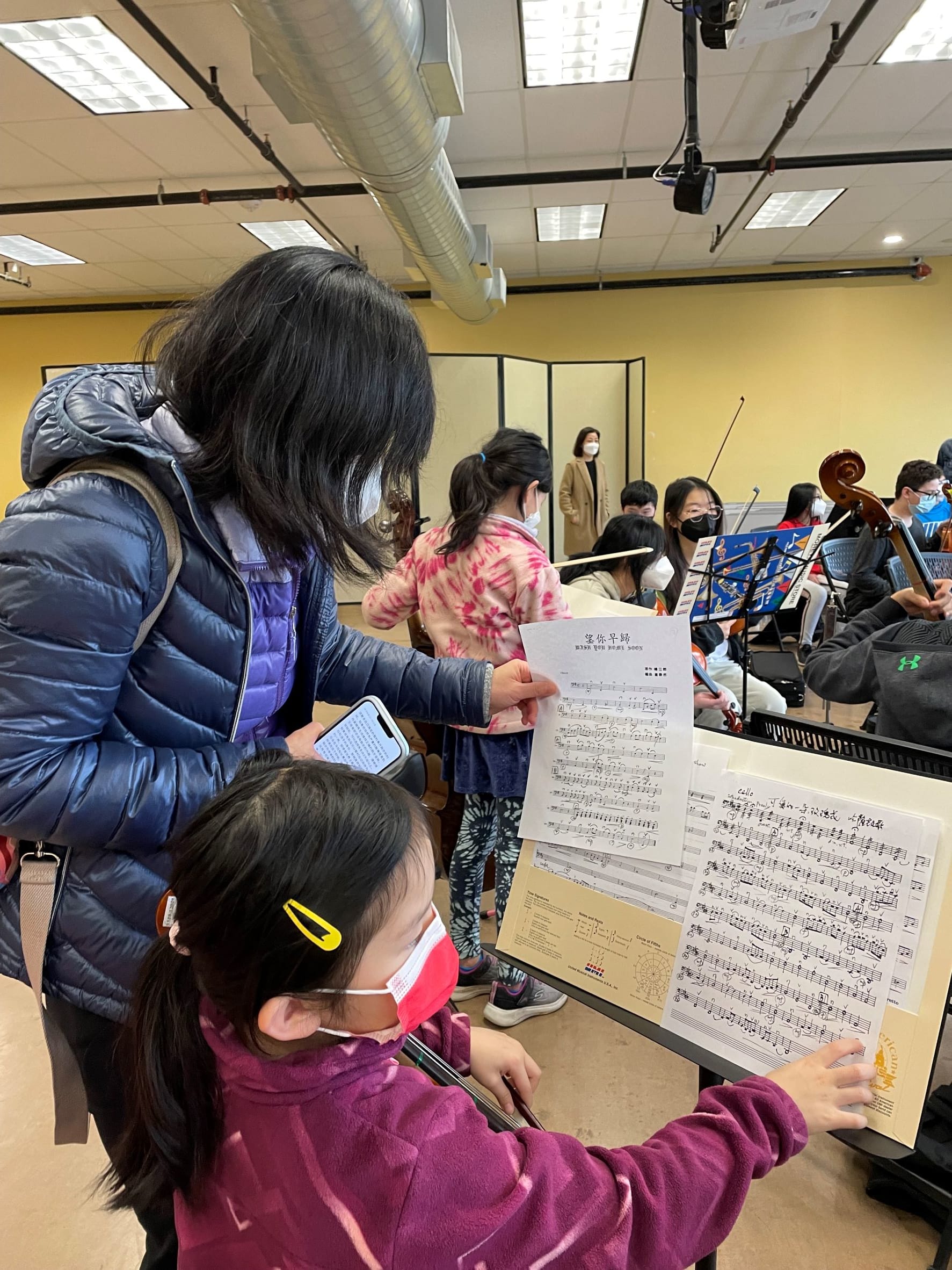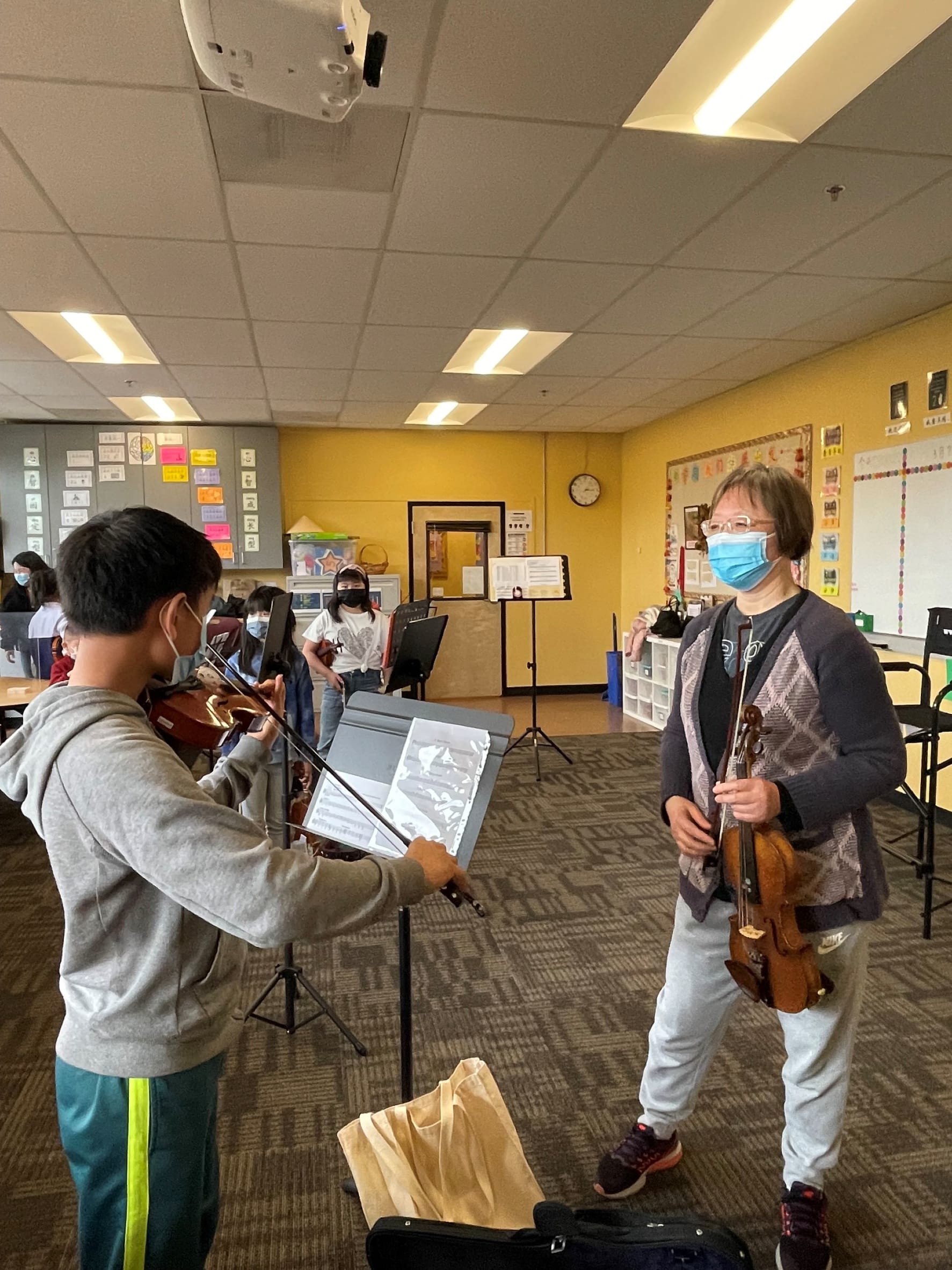 周日是刚组建的社区青少年弦乐队首次排练,尽管是大家首次聚在一起,有学生家长Julia和我们的义工元老Nancy帮助操持,大家很快各就各位,柳老师负责大班,张老师负责初级组小班。柳老师拉琴很有感染力,对孩子们的要求也是这样,我作为一个外行,觉得实在是太重要了,和平时看到孩子们的拉琴风格大不一样。如同社区的大鼓队,我们就一直希望孩子们要有那么一股子精神。现在又有了弦乐队,今年的文化节舞台上定会看到孩子们焕然一新的精神面貌。